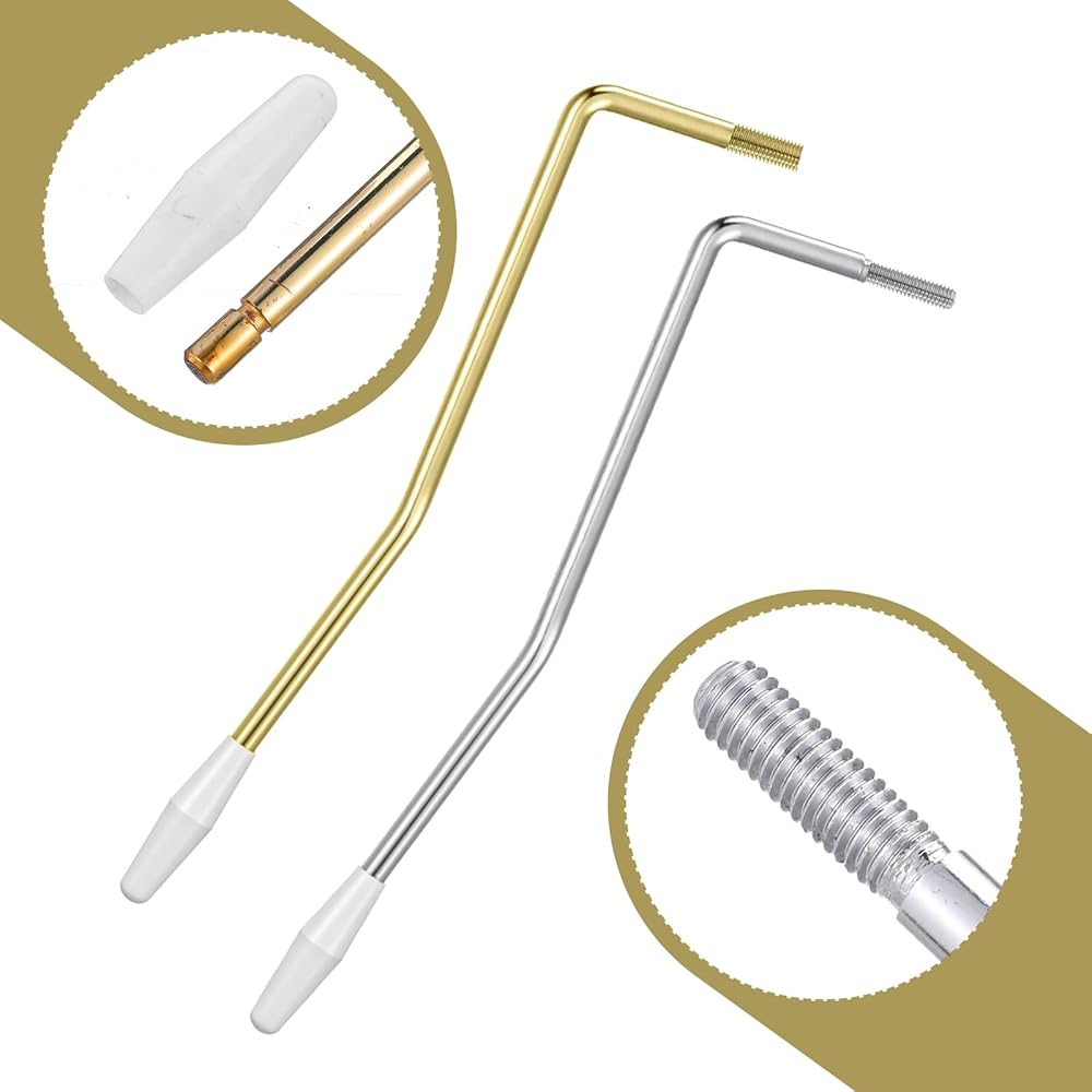 【Durable Metal Construction】Crafted from robust steel, these guitar tremolo arms are built to withstand the rigors of frequent use and aggressive playing styles. The metal material ensures exceptional hardness and longevity, resisting bending or deformation even under high string tension during intense whammy bar maneuvers. This durability translates to consistent performance over time, maintaining precise control over pitch modulation and vibrato effects.