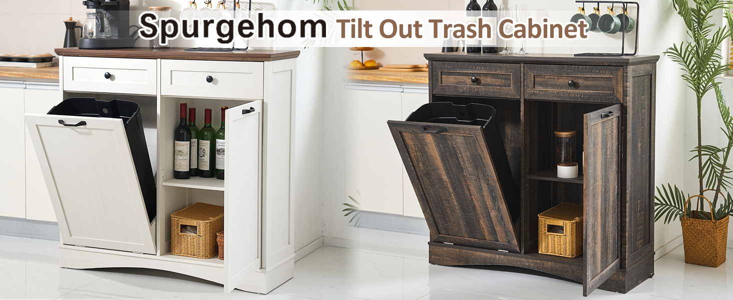 【متينة ومستقرة】تم تصميم خزانة سلة المهملات Spurgehom وتصنيعها بمفصلات/مقابض مقاومة للصدأ، وشرائح أدراج عالية الجودة، وسلال غسيل. ملحوظة: تناسب صناديق القمامة البلاستيكية سعة 13 جالونًا أو أقل.