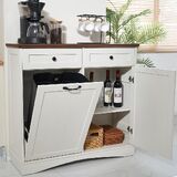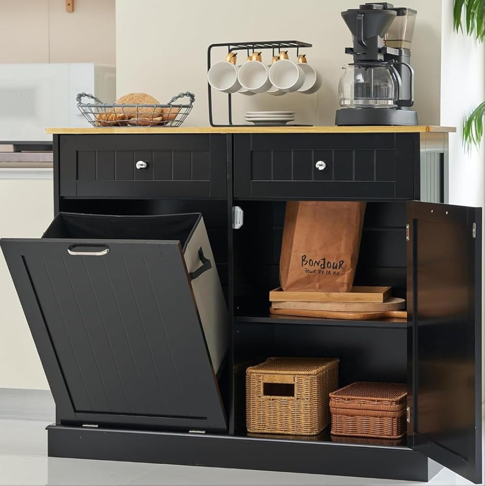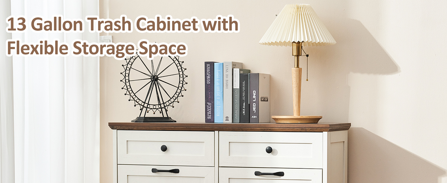 【مادة آمنة للمطبخ】خزانة سلة المهملات مصنوعة من خشب ليفي متوسط الكثافة مع ملصقات مصقولة مقاومة للرطوبة، بسيطة وفاخرة وسهلة التنظيف. جميع الألواح الخشبية المستخدمة في منتجاتنا متوافقة تمامًا مع متطلبات P2 لمجلس كاليفورنيا لموارد الهواء (CARB). مصنوعة من مواد عالية الجودة، لذلك يمكنك استخدامها براحة البال.