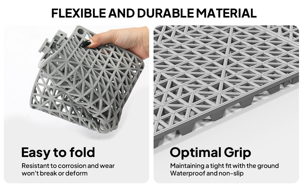 تصريف مسامي وأمان مضاد للانزلاق - يسمح البلاط الخارجي ذو التصميم المبتكر للشبكة المفتوحة بتدفق الماء والسوائل المنسكبة على الفور، مما يمنع البرك ويحافظ على الأسطح خالية من الانزلاق حتى في الظروف الرطبة مثل أسطح حمام السباحة أو المطابخ المزدحمة.