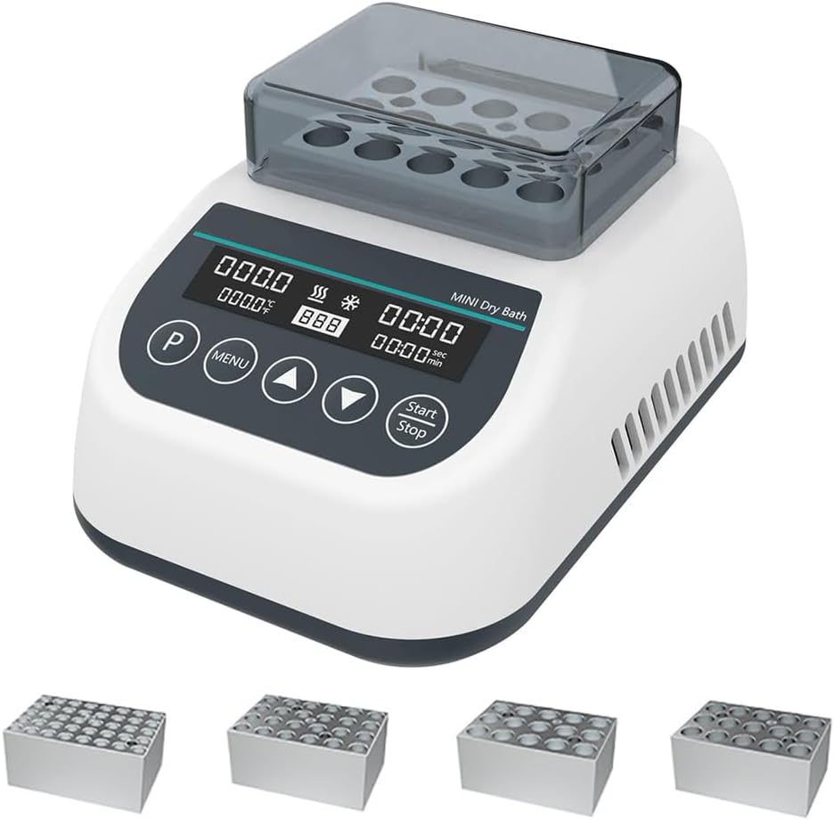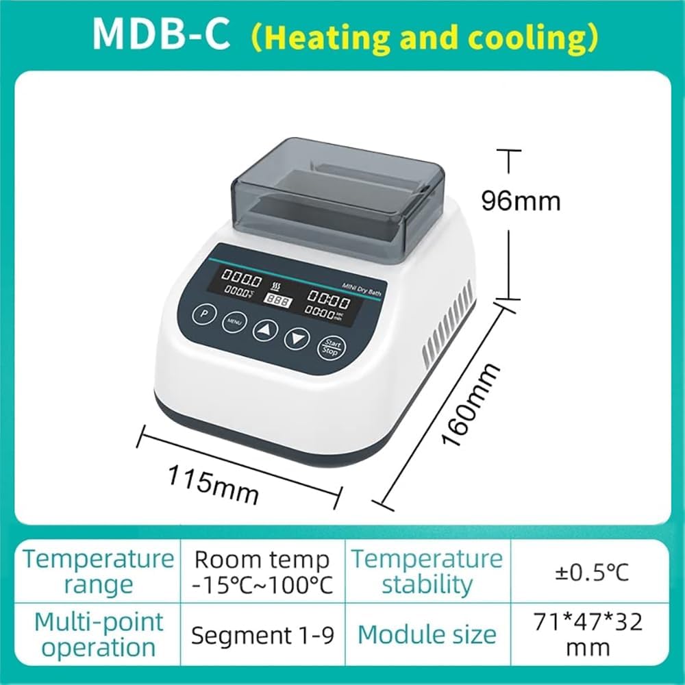 حاضنة حمام جافة صغيرة، 4 وحدات للتدفئة والتبريد في المختبر، 0.2/0.5/1.5/2 مل من أنابيب الطرد المركزي وحمام مائي، 9 إعدادات برامج للتحكم الحراري، للتجربة المعملية