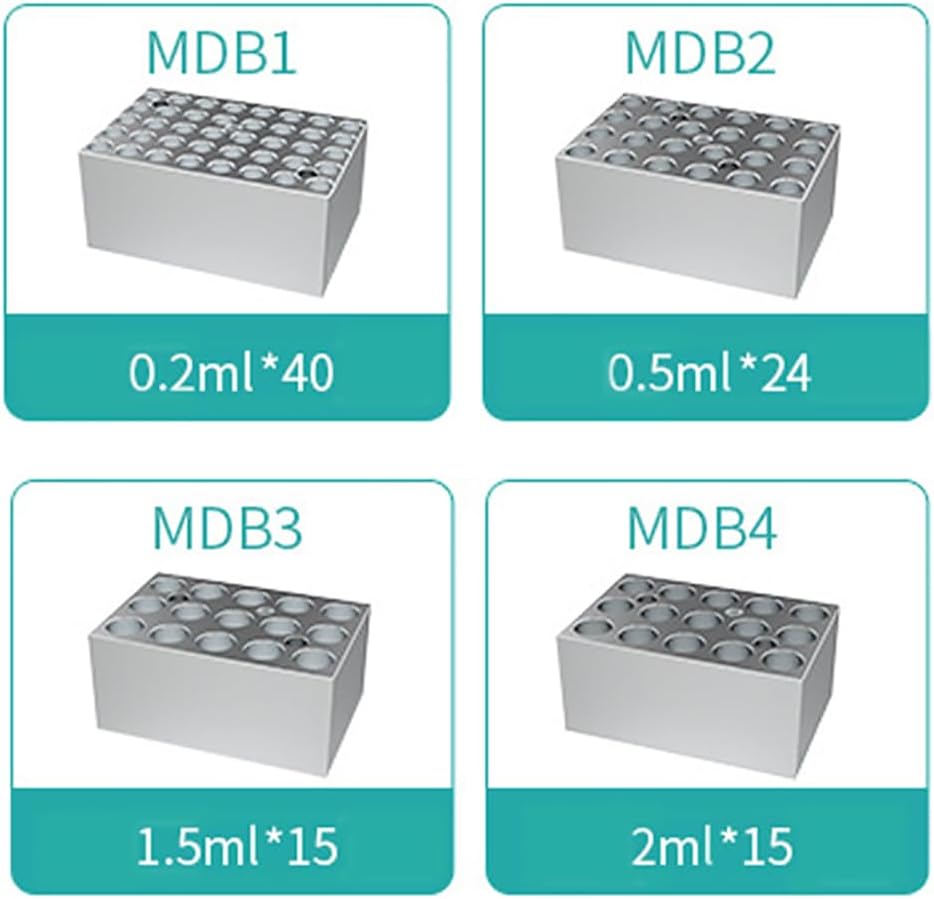 【4 modules】: Equipped with 4 modules, suitable for 0.2/0.5/1.5/2ml centrifuge tubes. Different modules can be replaced according to experimental needs. With intuitive LED real-time temperature digital display, the experiment is more accurate.