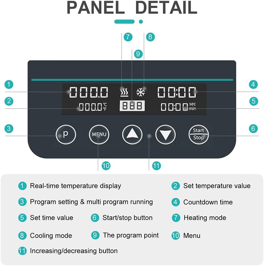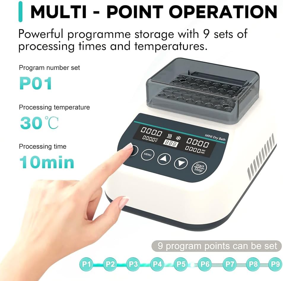 【Multi-point operation】: Super program storage function, you can set up to 9 sets of circulation time and temperature. You can directly call the stored program when using it. After running one program, it will automatically jump to the next program until all programs are completed. No need for multiple operations.