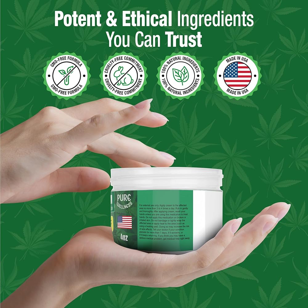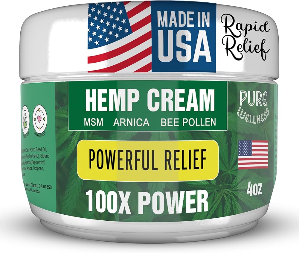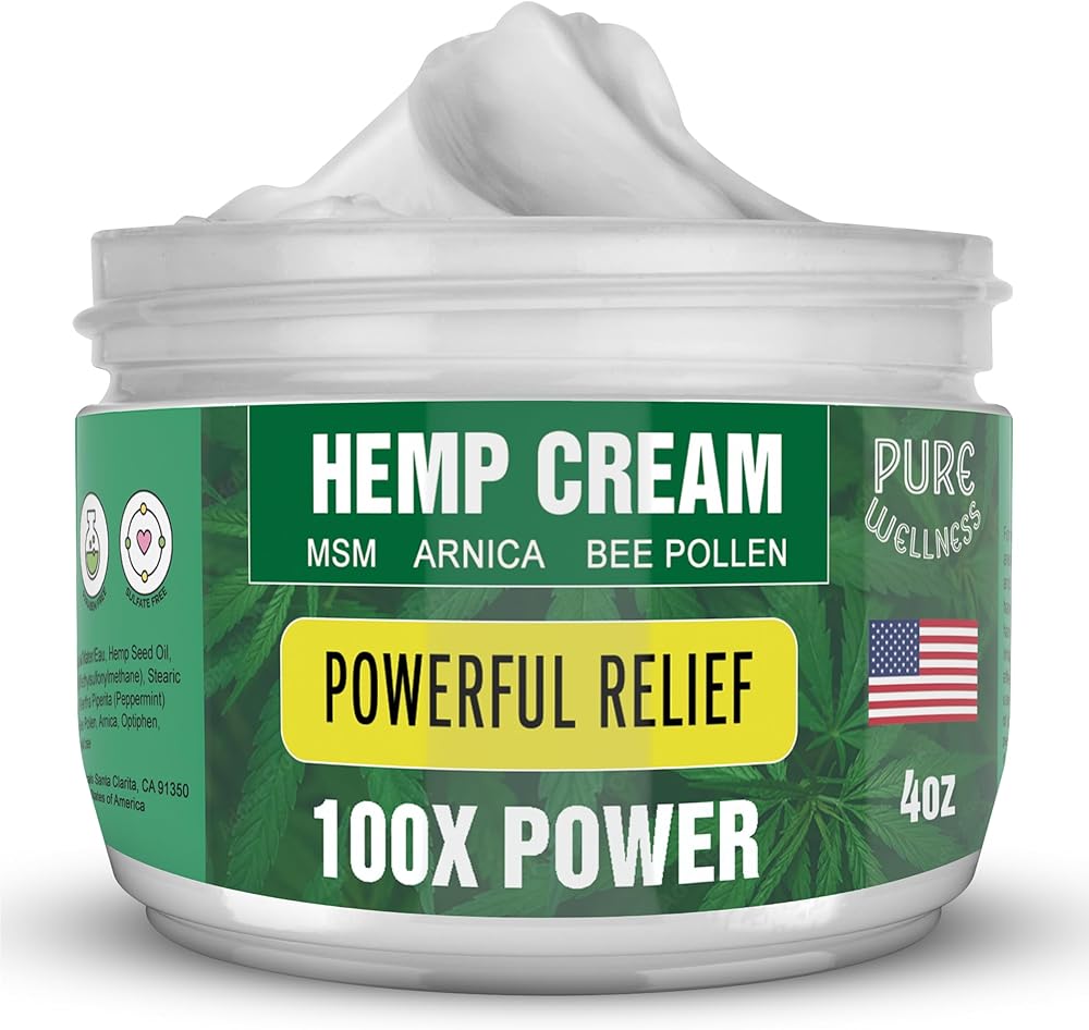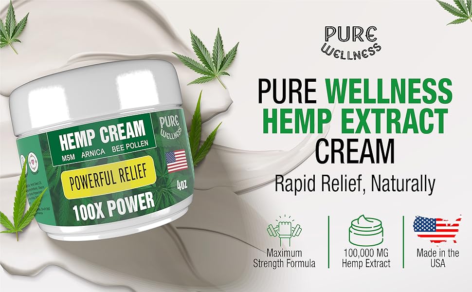 كريم القنب العافية النقي بقوة قصوى 100.000 مجم مع MSM وزهرة الأرنيكا وحبوب لقاح النحل - 4 أونصة، يدعم تخفيف وتهدئة المفاصل والعضلات والكتف والظهر والركبة والأعصاب - عبوة واحدة