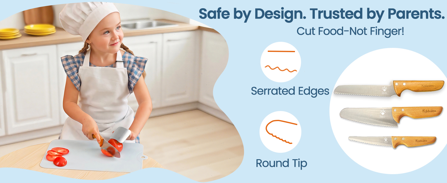 • سلامة الأطفال أولاً: تتميز سكاكين مطبخ الأطفال هذه بشفرات مسننة، وواقي للأصابع، وأطراف مستديرة للمساعدة في منع الجروح العرضية مع السماح للأطفال بتجربة الطبخ الحقيقي بأمان.