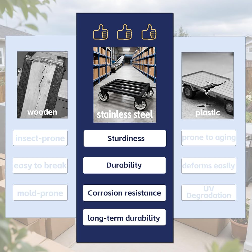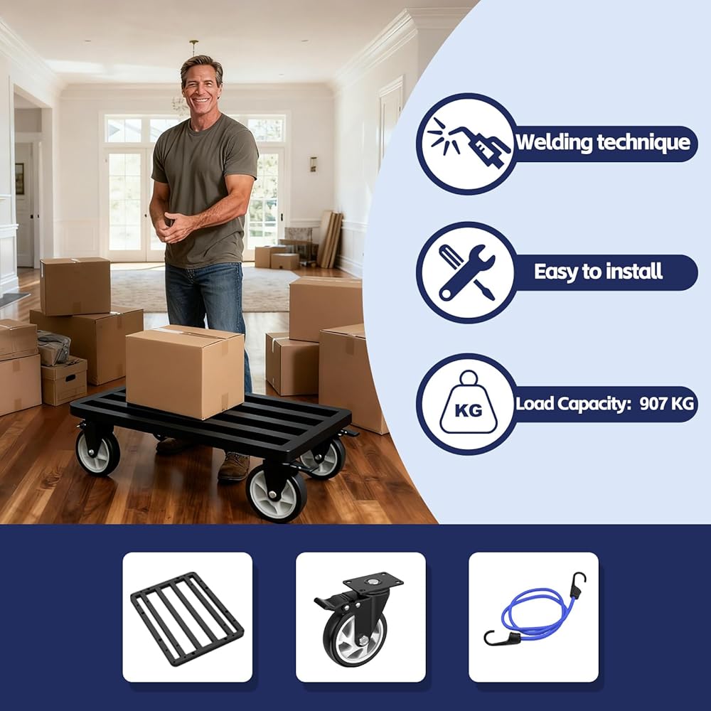 [هيكل متين من الفولاذ بالكامل]: تم تصنيع دوللي الأثاث من الفولاذ عالي التحمل ومصنوع من الفولاذ المطلي بالمسحوق الفاخر. إنه يوفر قدرة تحمل فائقة وطول العمر مقارنة بالنماذج الخشبية أو البلاستيكية، ويدعم ما يصل إلى 2000 رطل لسهولة النقل وأكثر كفاءة.
