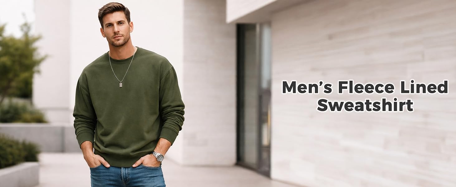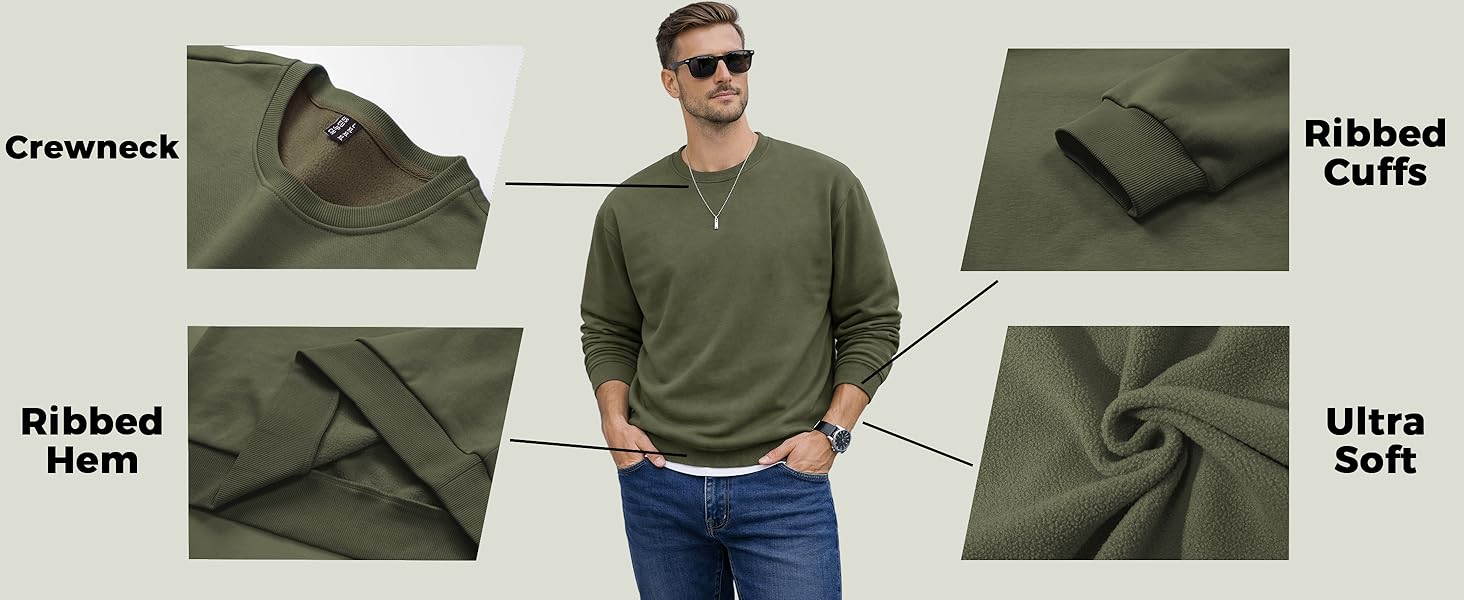 دفء من الصوف متوسط الوزن: سويت شيرت رجالي مبطن بالصوف ذو رقبة دائرية يوفر الدفء المريح بدون حجم كبير؛ مريحة للربيع والخريف والشتاء وسهلة التركيب