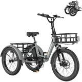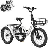 Constructed from lightweight yet strong aluminum alloy, this electric tricycle supports up to 450 lbs payload capacity. The foldable frame design allows easier storage in garages, apartments, RVs, or larger vehicle trunks, making it ideal for transportation and travel.