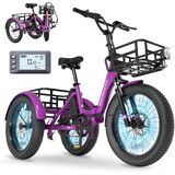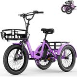Powered by a 500W brushless rear motor with 1000W peak output, this electric trike delivers smooth acceleration and dependable performance for urban riding and moderate inclines. The integrated rear differential helps balance rear wheel speed during turns, supporting improved stability and control.
