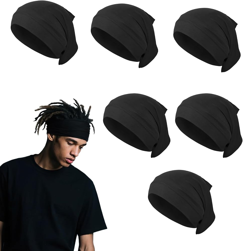 6 قطع من عمامة دريدلوك من الألياف اللدنة، قبعة دريدلوك مرنة واسعة للرجال، أغطية رأس سوداء ناعمة من أجل لوكس، ملحقات دريدلوك
