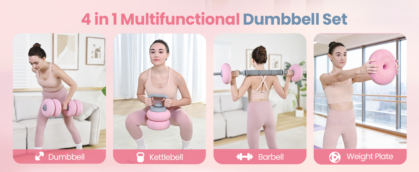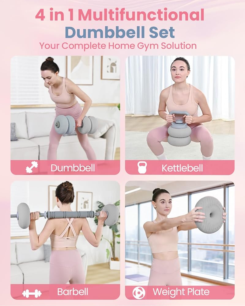 【مجموعة دمبل 4 في 1 وأثقال وأثقال كيتل بيل】تتحول مجموعة الدمبل هذه إلى دمبل أو حديد أو اثنين من أجراس كيتل بيل أو أربع ألواح وزن مستقلة. يضمن الموصل الآمن ثباتًا قويًا. مجموعة واحدة مدمجة، أربع طرق للتدريب.