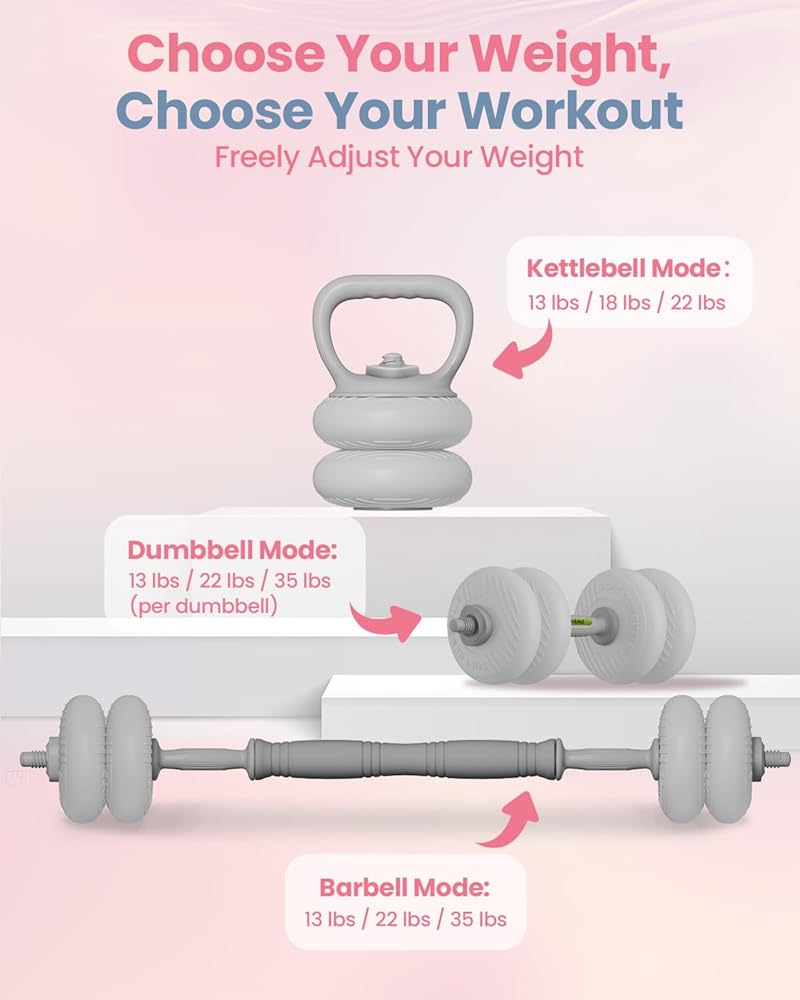 مجموعة دمبل قابلة للتعديل من كيسنبلد، 13/18/22/35 رطل، مجموعة وزن ناعمة مع موصل، مجموعة دمبل 4 في 1 تستخدم كأثقال وكتل بيل للصالة الرياضية المنزلية، وتمارين اللياقة البدنية للرجال والنساء والمبتدئين