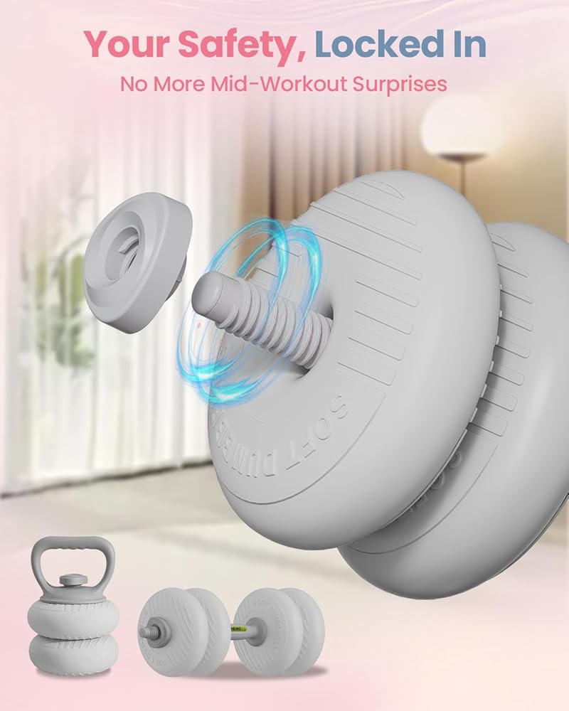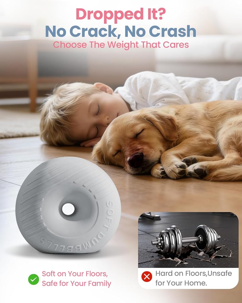 【مجموعة دمبل آمنة وهادئة قابلة للتعديل】على عكس الأوزان الصلبة، تتميز مجموعة الدمبل القابلة للتعديل بتصميم SoftShell. الجزء الخارجي الشبيه بالمطاط والقلب الرملي الحديدي يمتص الصدمات، ويحمي الأرضيات ويزيل الضوضاء. مثالي للشقق أو العائلات أو التدريبات في وقت متأخر من الليل. الاستثمار الأكثر أمانًا في صالة الألعاب الرياضية المنزلية الذي يمكنك القيام به.