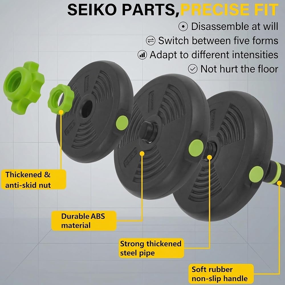 [قبضة آمنة ومواد صديقة للأرضيات] توفر مقابض ABS المريحة ذات الملمس المضاد للانزلاق قبضة ثابتة ومريحة أثناء كل تكرار. تساعد ألواح الوزن المطلية بمادة البولي إيثيلين على تقليل الضوضاء وحماية الأرضيات، مما يجعل مجموعة الوزن المدمجة هذه مثالية للمعيشة في الشقق والمساحات المشتركة وجلسات التدريب في الصباح الباكر أو في وقت متأخر من الليل.