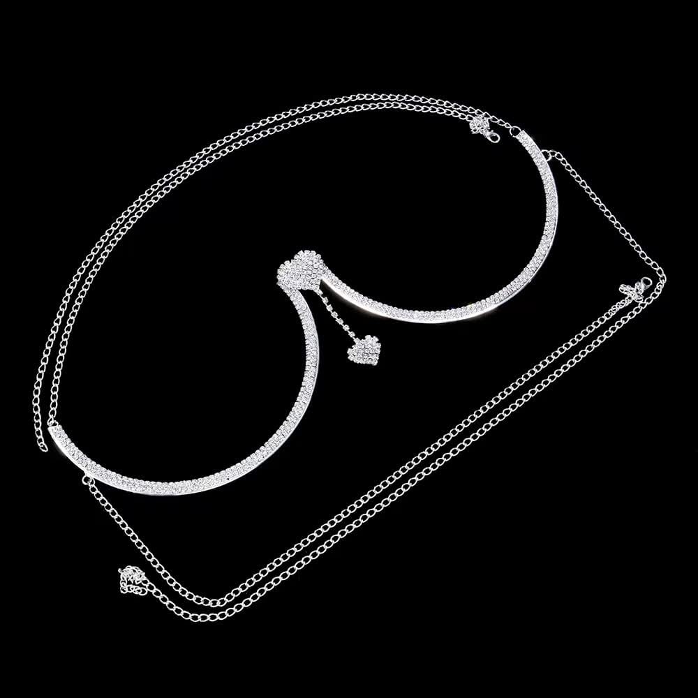 Nieeweiy حجر الراين الصدر قوس سلسلة العصرية كريستال القلب قلادة الصدر قوس الصدرية سلسلة مثير بيكيني الصدرية الجسم سلسلة مجوهرات للنساء
