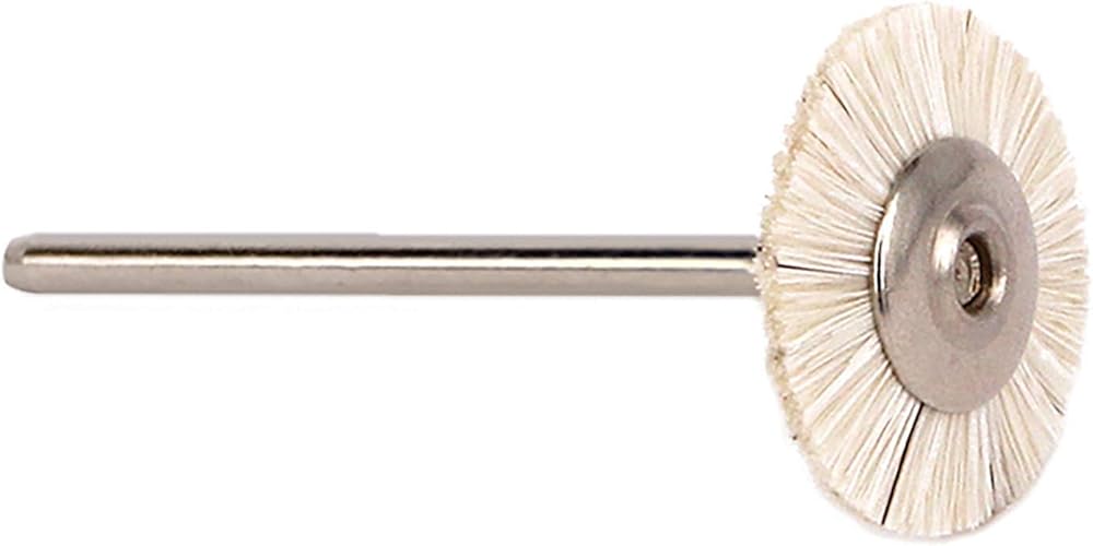 3/32? (2.35 mm) shanks Bristle Brushes are used to clean and prepare surfaces for buffing and polishing. Bristle Brushes are used to clean and prepare flat, curved, and uneven surfaces for buffing and polishing and to polish with polishing compounds. They are made with natural bristles–chunking for stiff, horsehair for firm, and goat hair for soft bristles. Steel rings hold and evenly distribute bristles. 25,000 Maximum RPMs. Bristle Brushes are used to clean and prepare surfaces for buffing and polishing. Bristle Brushes are used to clean and prepare flat, curved, and uneven surfaces for buffing and polishing and to polish with polishing compounds. They are made with natural bristles–chunking for stiff, horsehair for firm, and goat hair for soft bristles. 3/32? (2.35 mm) shanks. Steel rings hold and evenly distribute bristles. 25,000 Maximum RPMs. Measurements are in Millimeters Part No. – Bristle Type – Size – Pack Quantity Wheel-Shape Head Diameter A-MB22-12 – White Goat – 22 mm – 12-pk A-MB21-12 – White Horse – 14.2 mm – 12-pk A-MB23-12 – White Horse – 19 mm – 12 pk A-MB24-12 – Black Chunking – 22 mm – 12-pk A-MB25-12 – Gray Goat – 22 mm – 12-pk A-MB26-12 – Brown/White Mix – 22 mm – 12-pk Star-Shape Head Diameter A-SB20-12 – White Goat – 22 mm – 12-pk A-SB21-12 – White Horse – 22 mm – 12-pk A-SB23-12 – White Chunking – 22 mm – 12-pk Star Anise-Shape Head Diameter A-AS30-12 – White Goat – 22 mm – 12-pk A-AS31-12 – White Horse – 22 mm – 12-pk A-AS33-12 – White Chunking – 22 mm – 12-pk End Brushes Diameter x Length A-MB35-24 – White Horse – 4.8 x 9.5 mm – 24-pk A-MB33-24 – Black Chunking – 4.8 x 9.5 mm – 24-pk Cup Brushes Diameter x Length A-MB11-12 – Gray Goat – 12 x 9.5 mm – 2-pk A-MB12-12 – White Horse – 2 x 9.5 mm – 12-pk A-MB13-12 – Black Chunking – 12 x 9.5 mm – 12-pk