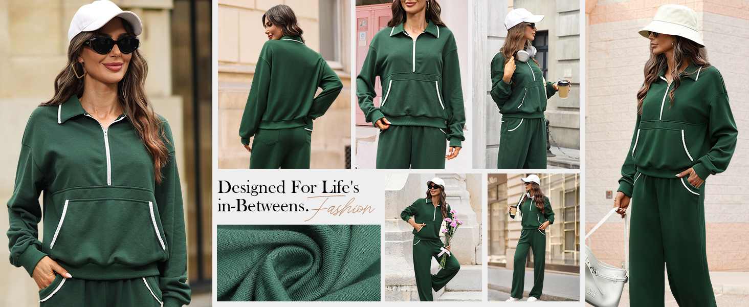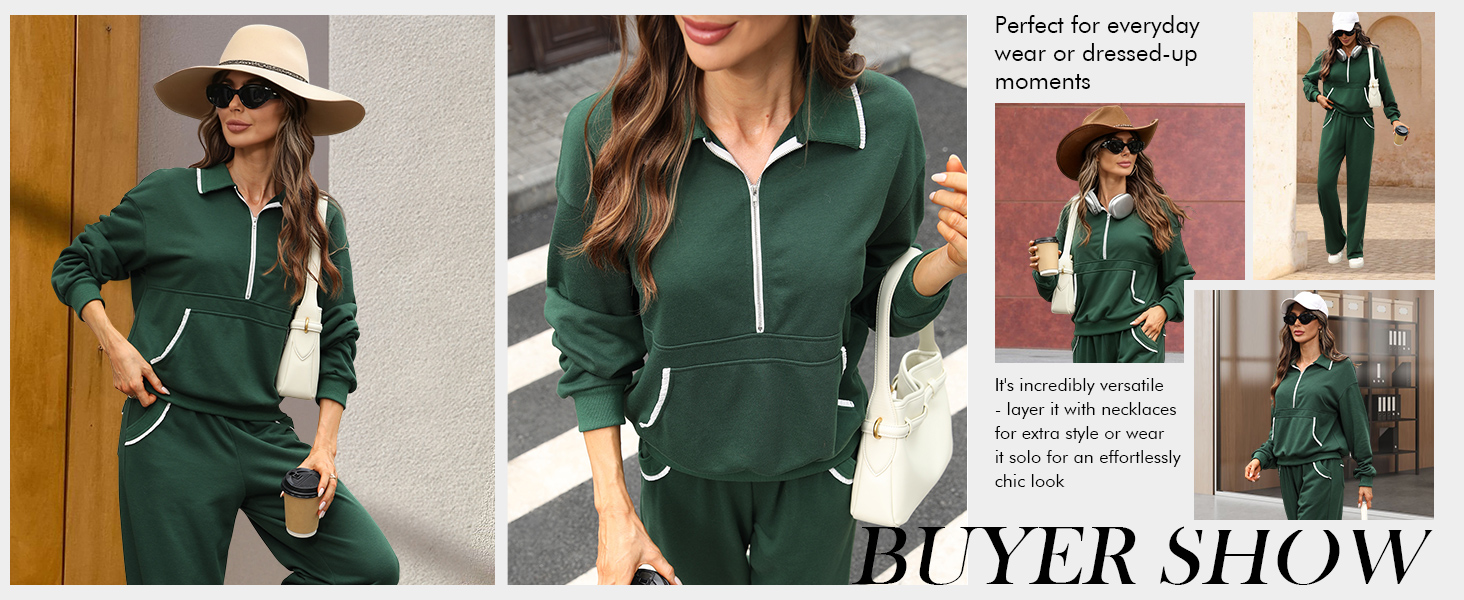 • تصميم قصير عصري ومتعدد الاستخدامات - يتناسب هذا السويت شيرت المريح بنصف السحاب بشكل مثالي مع بنطال رياضي مرن عالي الخصر ليضفي مظهرًا جذابًا على شخصيتك. هذه المجموعة ليست فقط للاسترخاء في المنزل؛ إنه رائع للقيام بالمهام أو النزهات غير الرسمية أو اليوجا أو كبيجامة لطيفة