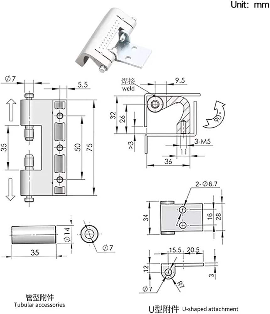 Removable Detachable Welded Concealed Hinge Industrial Machinery Equipment Cabinet Doors 1Pcs