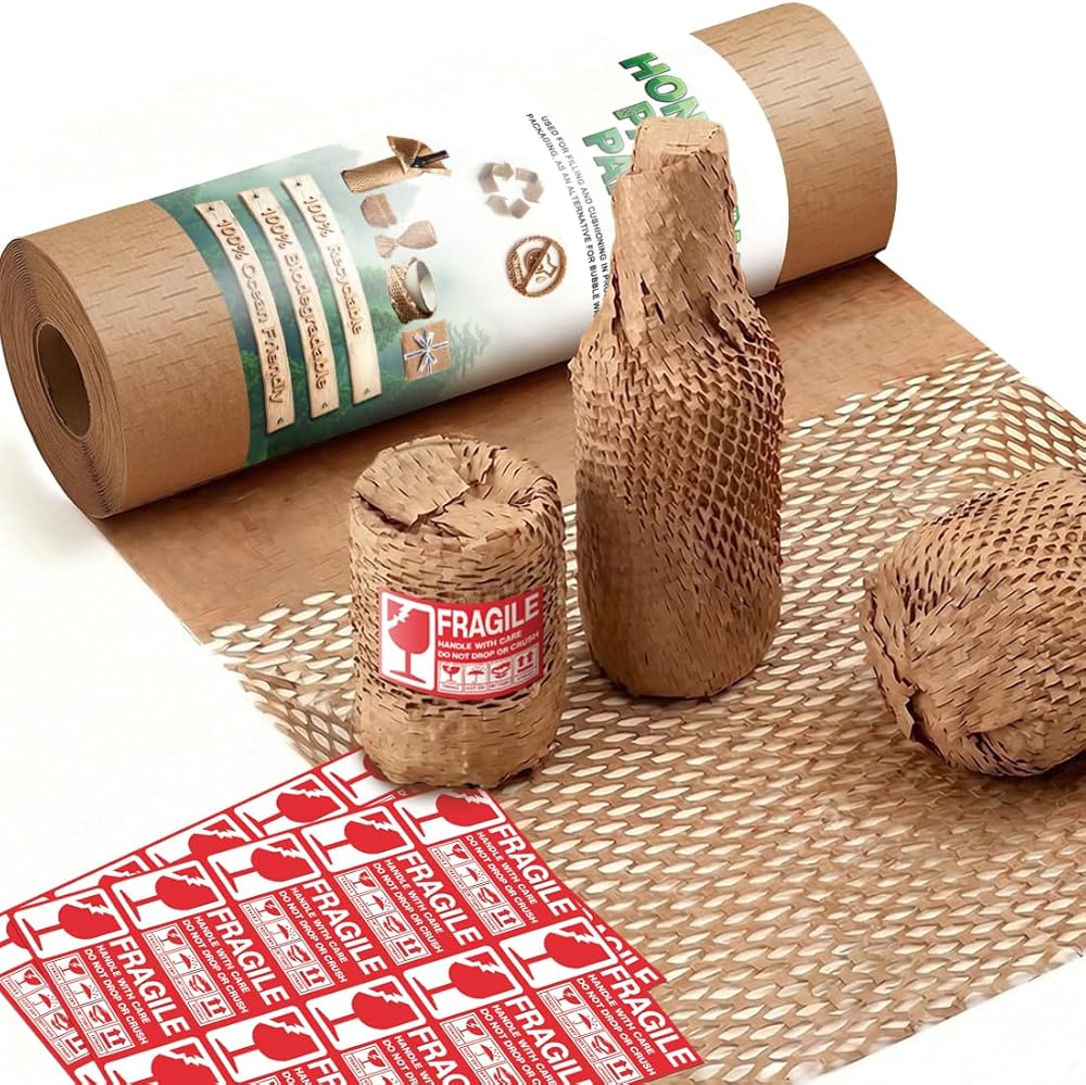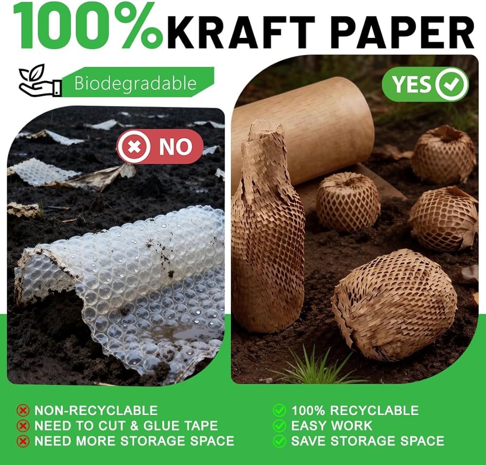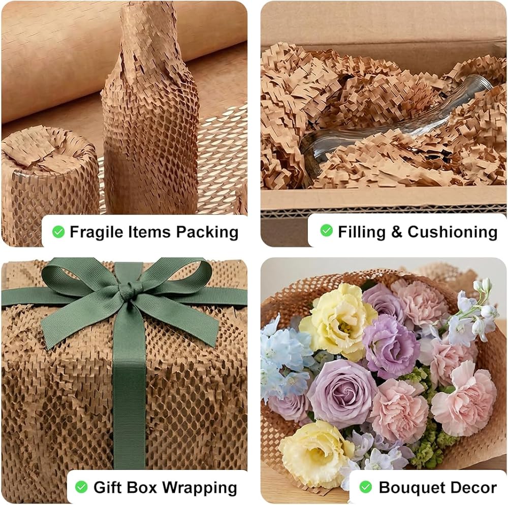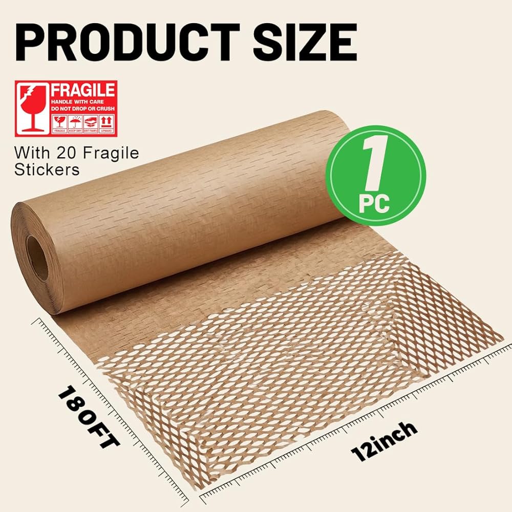 【100% Eco-Friendly & High Cushioning Performance】Made of biodegradable kraft paper, this honeycomb packing paper is a green alternative to plastic packaging—eco-conscious without compromising protection. When stretched, its unique honeycomb structure expands to form a shock-absorbing barrier, effectively safeguarding fragile items from bumps and scratches during transit.
