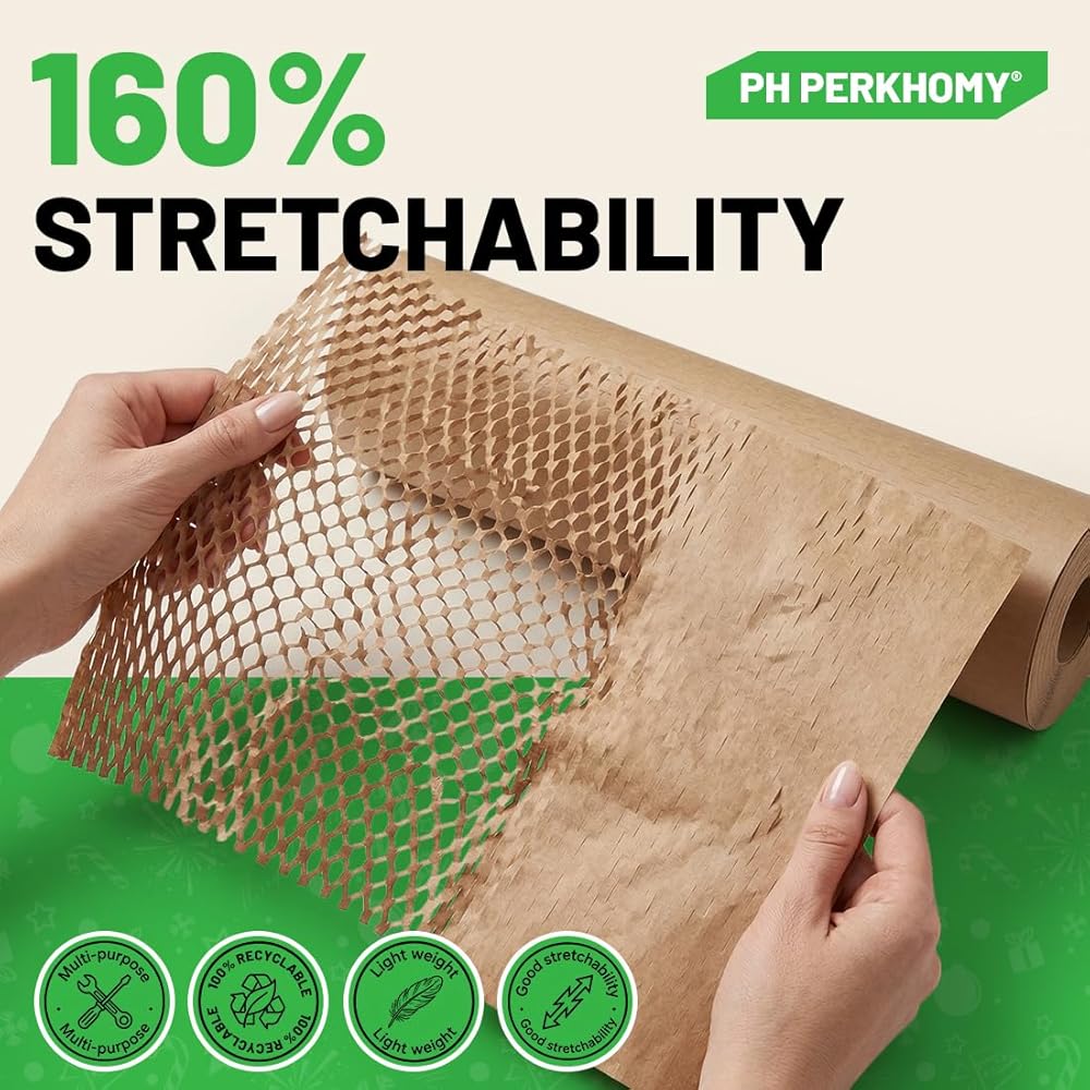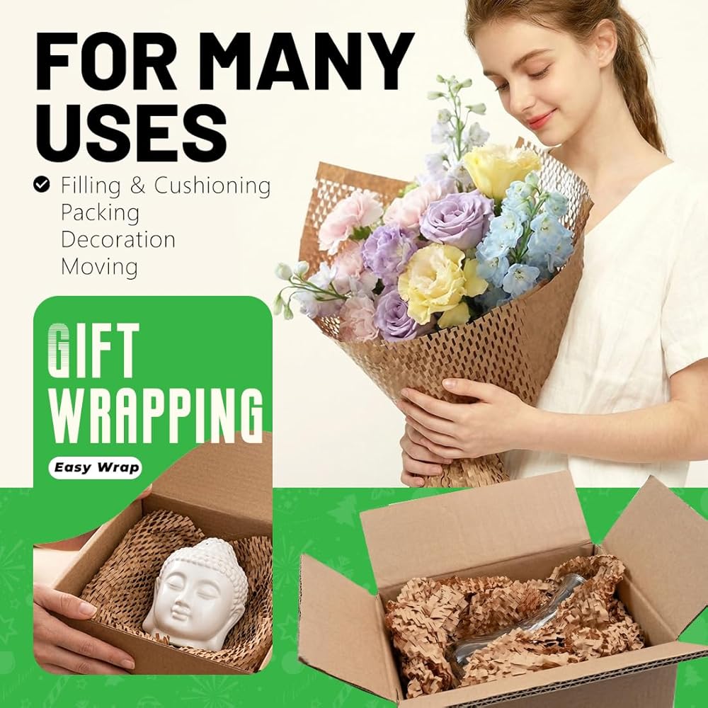 【Perforated Design for Effortless Use】Convenience meets efficiency! The honeycomb wrapping paper features pre-perforated lines, so you can tear off the exact length you need without scissors or tools. Speeds up packing for moving, shipping, or gift-giving—no fumbling with uneven cuts, making the process quick and hassle-free.