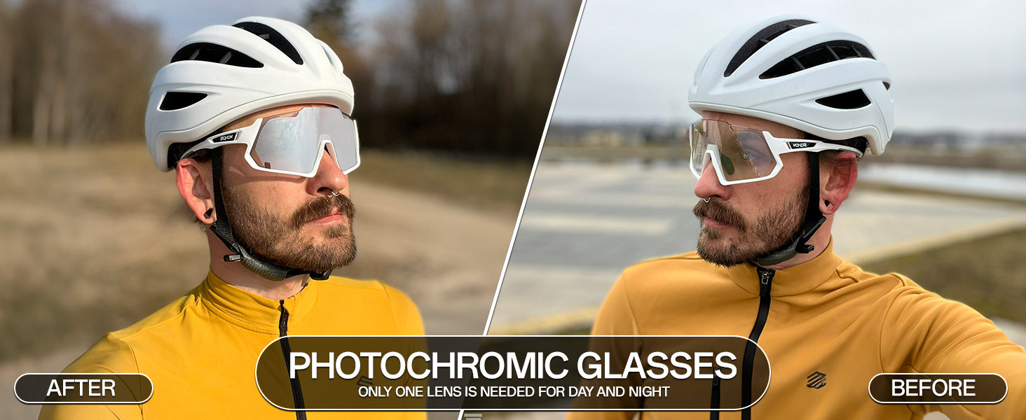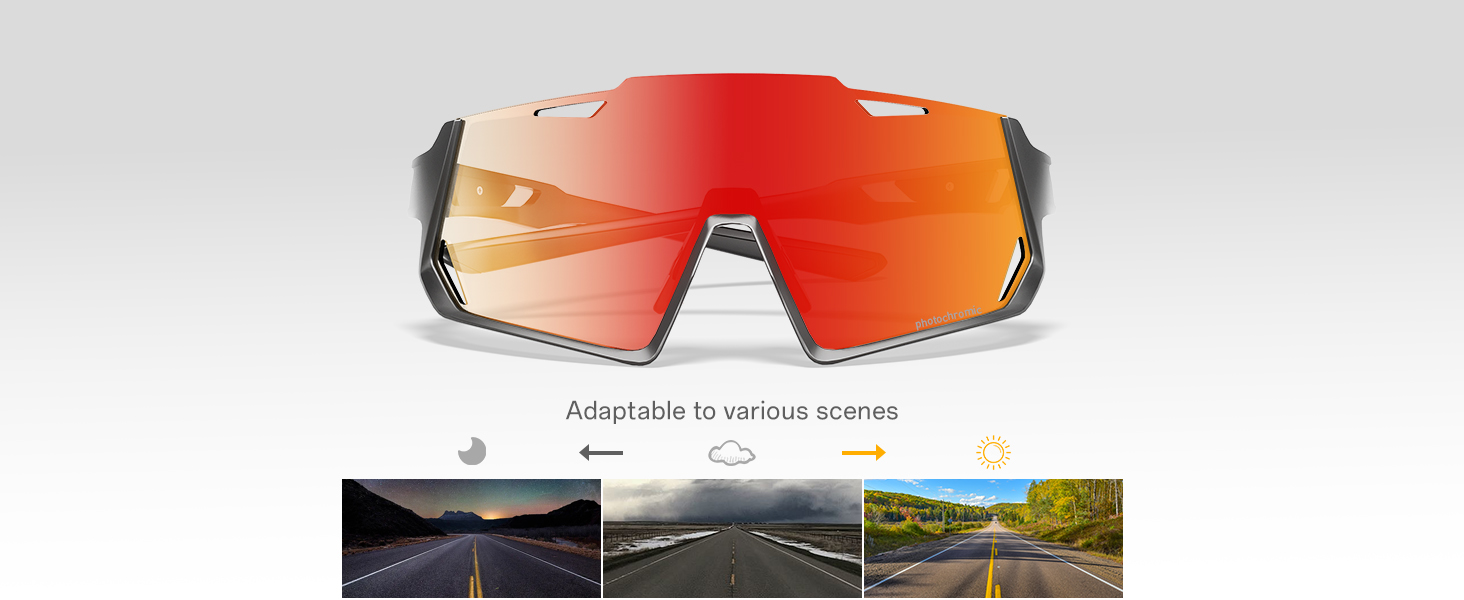 【عدسات فوتوكروميك】تصبح العدسات الفوتوكرومية داكنة وتفتيح مع تغير الضوء الخارجي دون الحاجة إلى التبديل بين النظارات، سيتغير لون النظارات الشمسية الفوتوكرومية من شفاف إلى رمادي في المشمس، مما يحمي عينيك بشكل فعال ويحافظ على ضوء مريح.