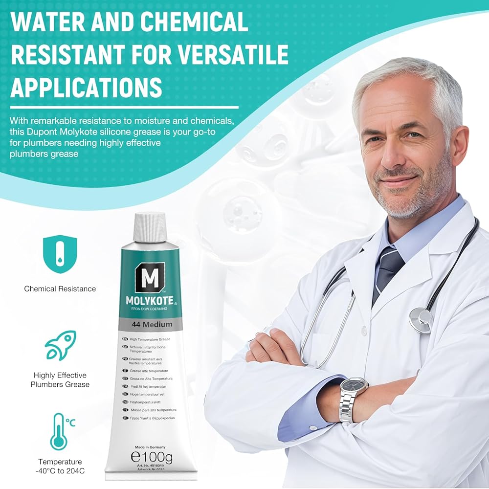 Molykote 44 متوسط 100 جرام شحم تشحيم 44 متر درجة حرارة عالية محامل تشحيم أختام وحلقات دائرية كابلات التحكم البلاستيكية تقلل من التآكل مقاومة الحرارة أوف وايت تقلل من التآكل