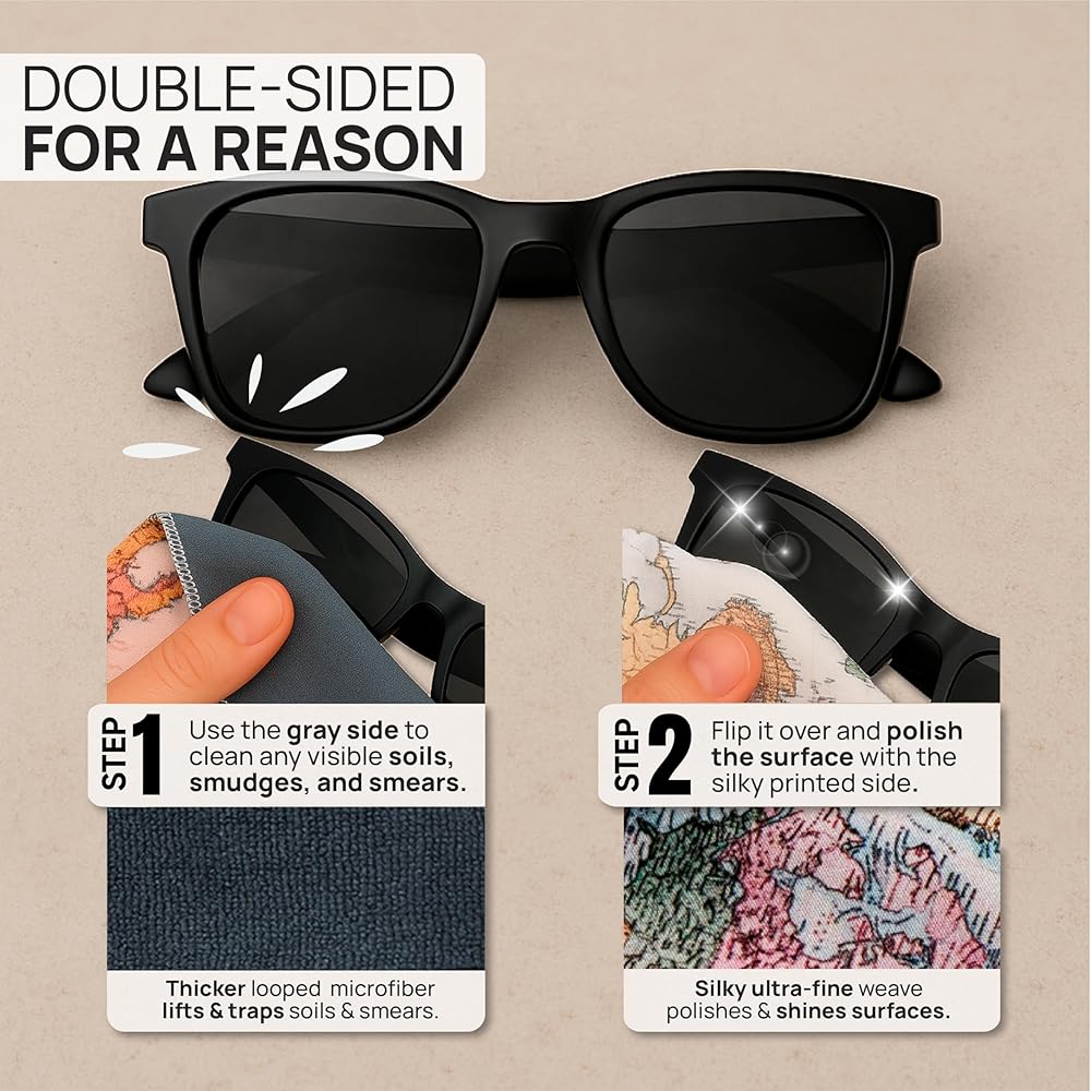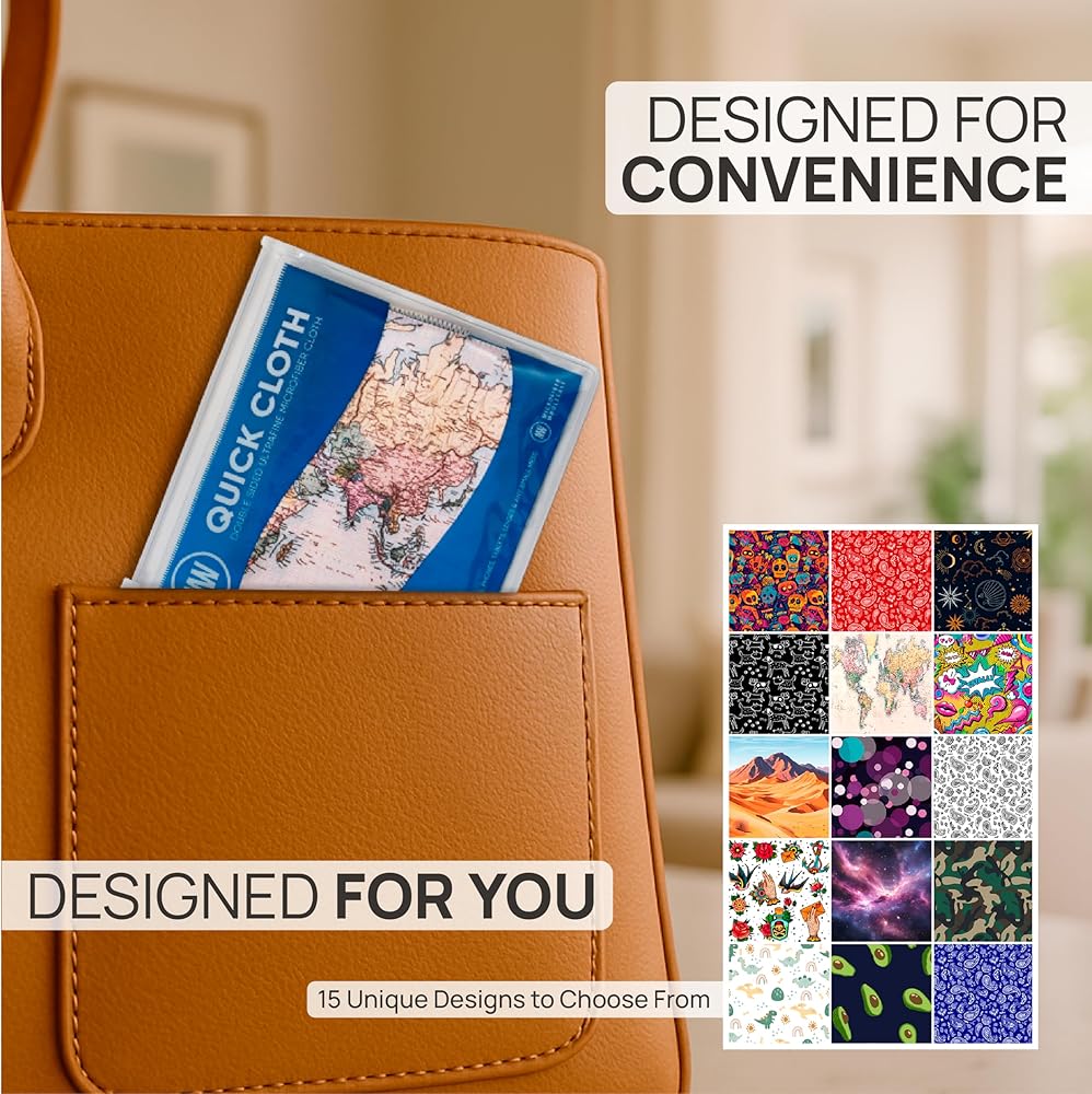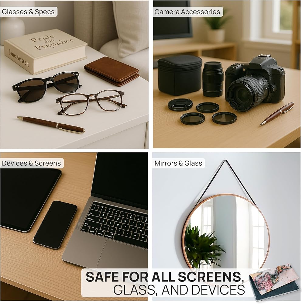 Tired of streaks, smears, and foggy lenses? Meet your new vision hero: Quick Cloths – the ultimate solution for scratch-free, streak-free cleaning of glasses, camera lenses, screens, and more. Whether you're cleaning your premium eyewear or polishing delicate optics, our microfiber glasses cleaning cloths deliver top-tier performance with every swipe. These double-sided microfiber absorbent towels feature two specialized cleaning textures. One side is ultra-soft for gentle buffing, and the other has a fine weave for lifting stubborn grime. Perfect for everything from eyeglass lenses and sunglasses to camera gear, phones, tablets, laptops, and computer monitors. Each cloth is engineered to be lint-free, reusable, and washable – lasting far longer than single-use wipes or cheap cloths. And because they're compact and lightweight, you can toss one in every bag, desk drawer, glove compartment, or camera case for easy, on-the-go use. Looking for something gentle on coatings? Our microfiber lens cleaning cloths are safe for anti-reflective lenses, polarized glasses, and all kinds of screen protectors. No scratching. No residue. Just a pristine finish, every time. Forget about wasting money on endless packs of lens wipes for eyeglasses or paper towels that leave lint and scratches behind. Quick Cloths offer a high-quality, eco-friendly alternative that's better for your gear and the environment. Whether you're a photographer, techie, glasses wearer, or just someone who likes clean stuff — Quick Cloths is your all-in-one, no-compromise solution for everyday clarity.