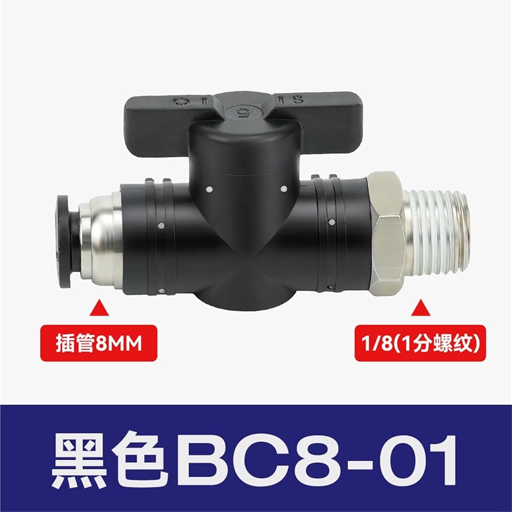 صمام يدوي بلاستيكي مشترك هوائي BUC-8/4/6/10/12 مفتاح يدوي لأنابيب الهواء BTC BC8-02 1 قطعة (أسود، BC8-01)