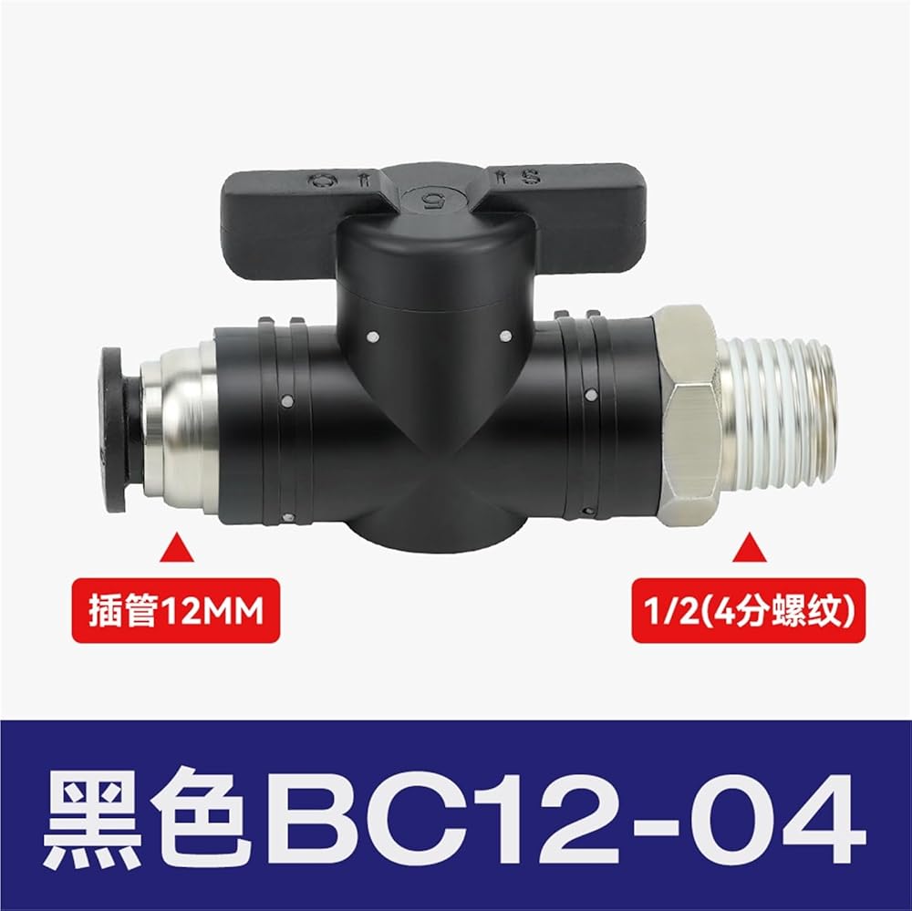 صمام يدوي بلاستيكي مشترك هوائي BUC-8/4/6/10/12 مفتاح يدوي لأنابيب الهواء BTC BC8-02 1 قطعة (أسود، BC12-04)