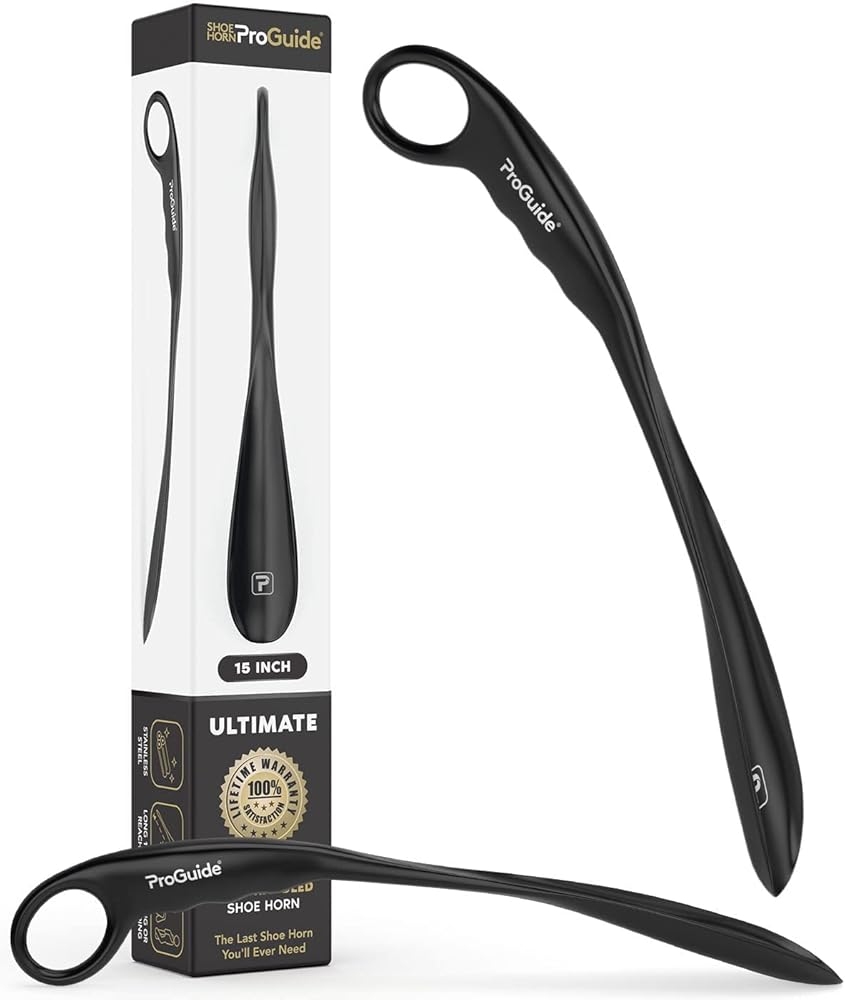 ضمان مدى الحياة عدم الانكسار أو الكسر أو الانحناء: انس البدائل البلاستيكية الرخيصة التي لا تدوم أبدًا - إن Shoe Horn ProGuide Ultimate عبارة عن قطعة طويلة من المعدن الصلب والمتين وشديد التحمل مقاس 15 بوصة المصنوع من الفولاذ المقاوم للصدأ والذي تم تصميمه ليدوم إلى الأبد. ونحن نضمن ذلك تمامًا - إلى الأبد!
