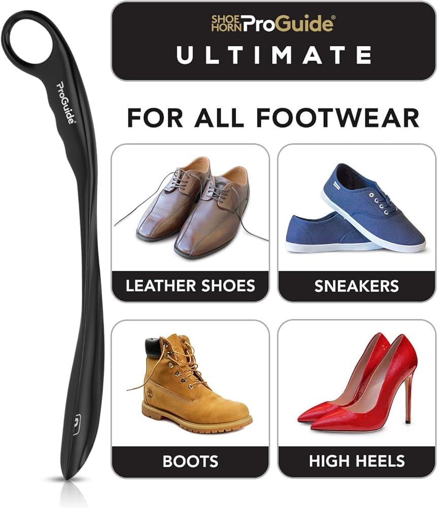 لم يكن وضع قدميك في حذائك بهذه السهولة من قبل - أفضل الأحذية والأحذية الطويلة والأحذية الرياضية والشباشب تستحق الأفضل في أناقة قرن الحذاء (calzador largo de zapatos). أملس وقوي ولامع وانسيابي، تضمن حواف ProGuide Ultimate الملفوفة والمستديرة بشكل مثالي تجربة ملاءمة القدم الأكثر سلاسة على الإطلاق. إكسسوار مثالي ومساعد حذاء لكبار السن والمعاقين وذوي الإعاقة