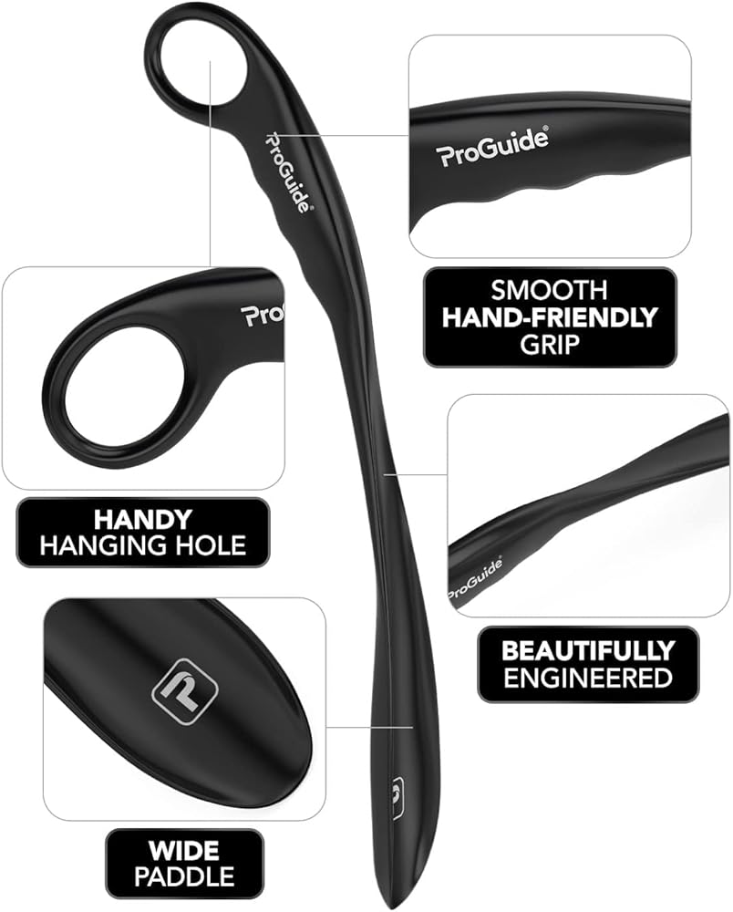 لا يوجد أي قرص أو جرجر أو تلف أو حواف حادة على الإطلاق - نحن نهتم بقدميك بقدر ما تفعله أنت. بفضل مجدافه الواسع مقاس 5 سم، يناسب Shoe Horn ProGuide Ultimate جميع أنواع الأقدام والكعب مما يجعله ملعقة الحذاء ذات المقبض الطويل التي ستختارها حذائك.