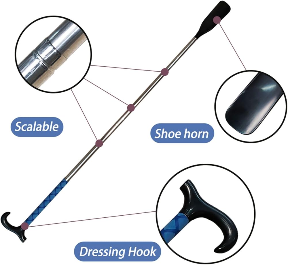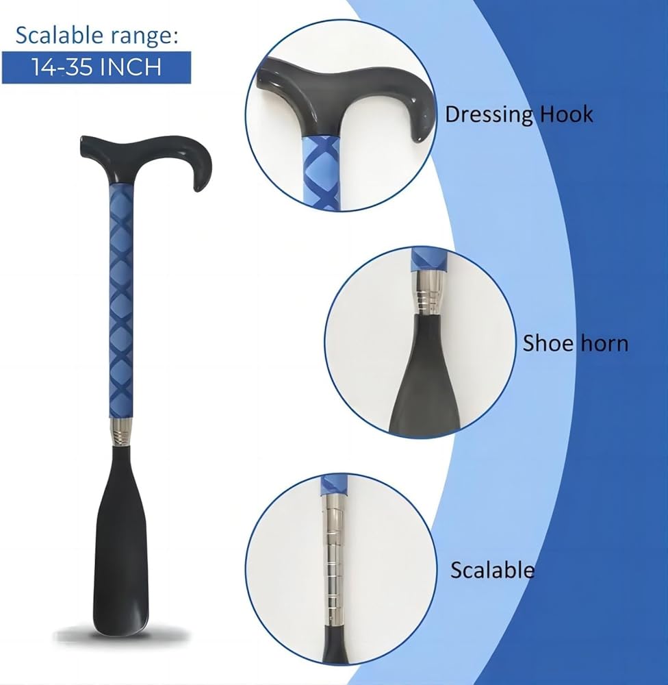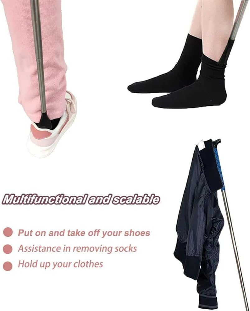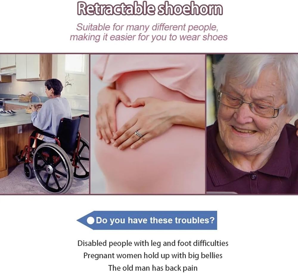 • لبيسة الحذاء الطويلة التلسكوبية: يمكن تعديل طول أبواق الحذاء بدون خطوات إلى أي طول يتراوح من 14 إلى 35 بوصة. يمكنك ارتداء حذائك أثناء الجلوس أو الوقوف دون الانحناء. إنها مريحة للغاية للاستخدام اليومي، خاصة المجموعة التي يجب اقتناؤها لأولئك الذين يعانون من صعوبات في الانحناء.