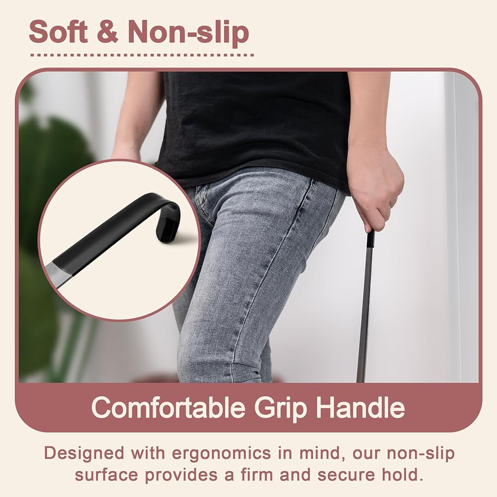 قبضة مريحة - تم تصميم قرن الحذاء الخاص بنا مع وضع الراحة في الاعتبار، ويتميز بمقبض مريح يناسب يدك بشكل مريح. يوفر السطح الأملس غير القابل للانزلاق تثبيتًا ثابتًا وآمنًا، مما يسمح بالتحكم الدقيق مع منع أي انزلاقات عرضية. قل وداعًا لآلام اليدين أو عدم الراحة أثناء استخدام لبيسة الحذاء.