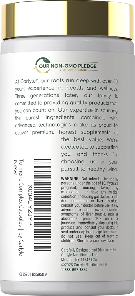 Our expertise in sourcing the purest ingredients combined with advanced technologies makes us proud to deliver premium, honest supplements at the best value. Carlyle Turmeric with CoQ10 & Black Pepper is a testament to our commitment to excellence, made with powerful ingredients rooted in wellness. Thanks for choosing us in your pursuit of living healthy.