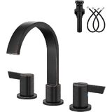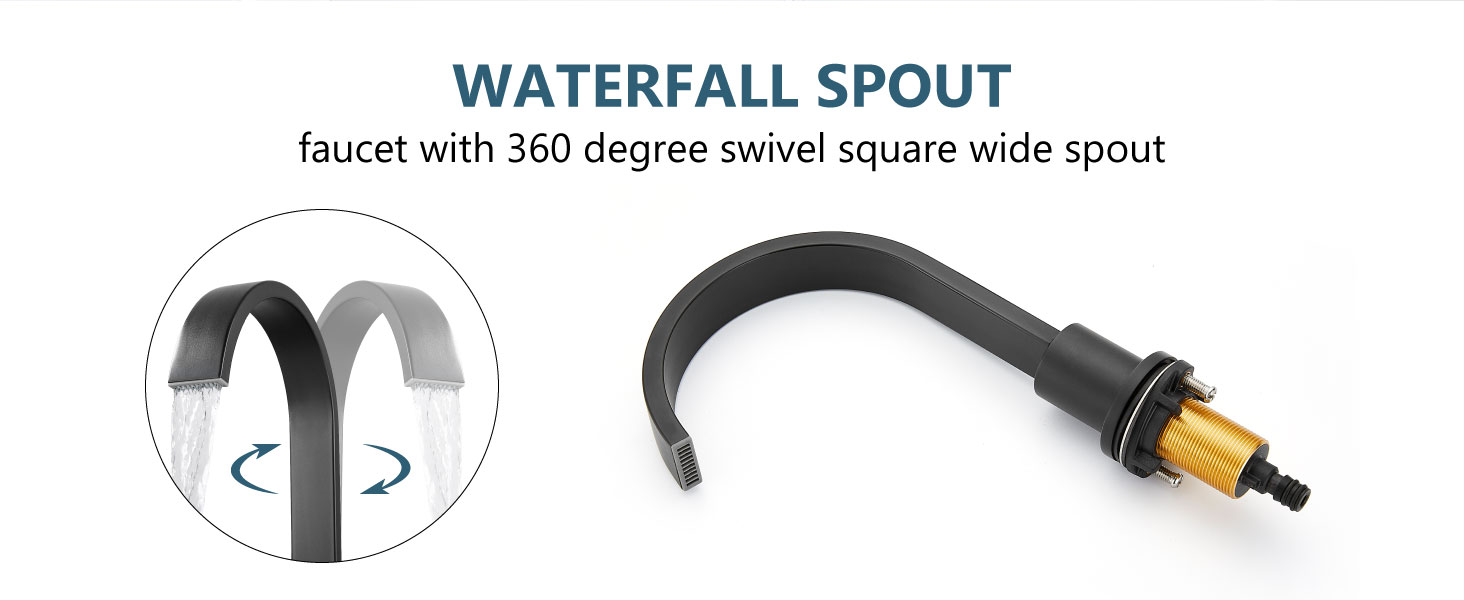 صنبور الشلال وصرف التدفق الزائد: يتميز صنبور الحمام ذو الثلاث فتحات بصنبور شلال عريض دوار 360 درجة لتدفق مياه ثابت وثابت. يشتمل على تصريف منبثق مطور مع حماية من التدفق الزائد للمساعدة في منع تدفق الحوض