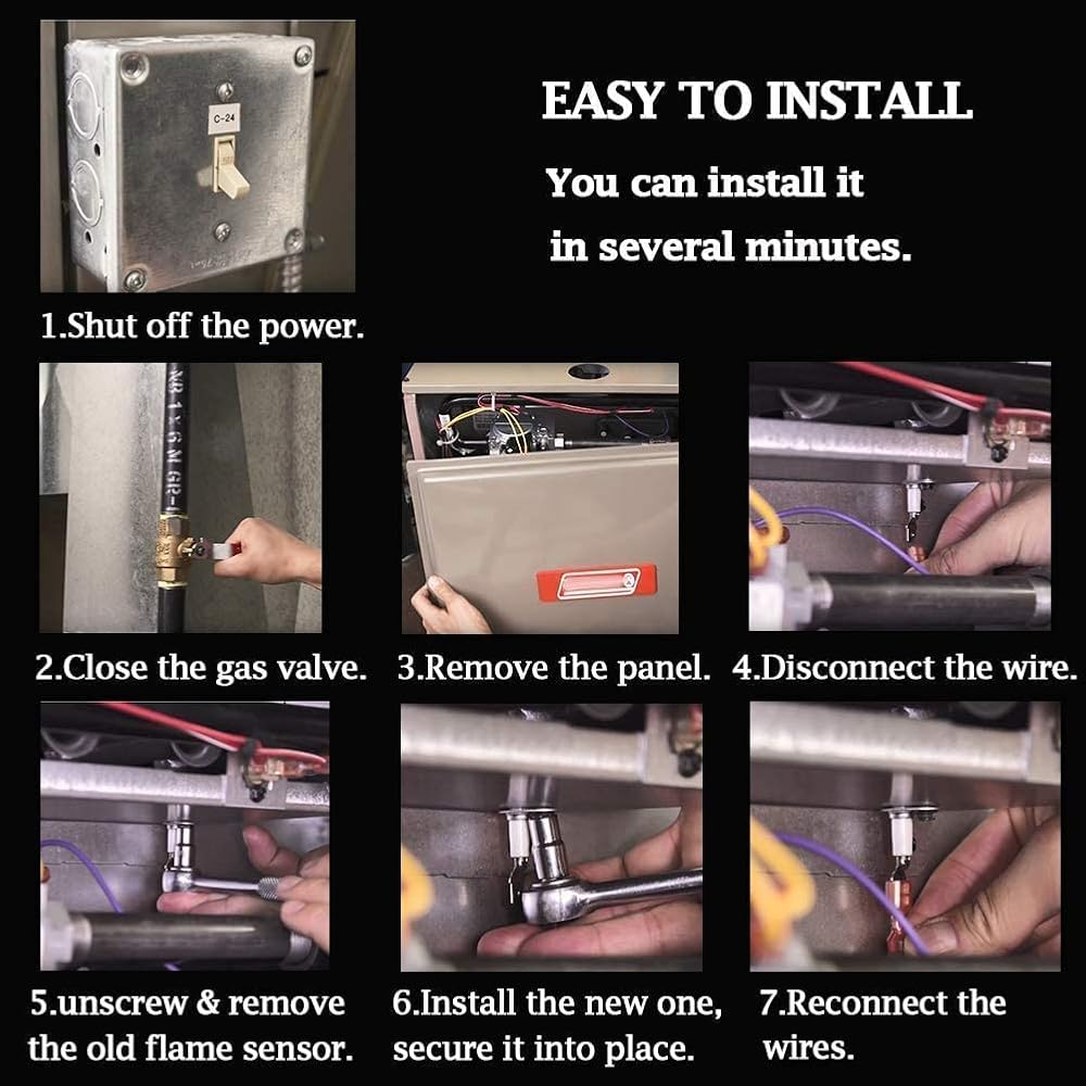 The SEN01114 flame sensor monitors the burner to detect whether or not a flame is present by sending a DC current through the sensor via the flame itself, received by the computer. If the flame sensor is defective, the furnace may not heat, or start and/or shut off after a few seconds to a minute continuously or intermittently after starting. This part is the most commonly replaced part (after the air filter) available, have your furnace operating smoothly in 36-48 hours in most areas of Canada/USA.