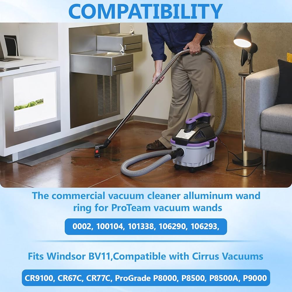 • التوافق: حلقة عصا الألومنيوم للمكنسة الكهربائية التجارية لعصي المكنسة ProTeam 10002، 100104، 101338، 106290، 106293، Windsor BV11، متوافقة مع Cirrus Vacuums CR9100، CR67C، CR77C، ProGrade P8000، P8500، بي 8500 ايه، بي 9000