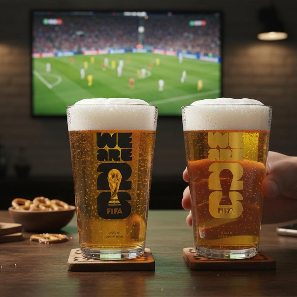 Celebrate the world's biggest sporting event from the comfort of your home. This set of two premium 16-ounce glasses combines the prestige of the FIFA World Cup 2026 with the classic feel of a high-end pub.