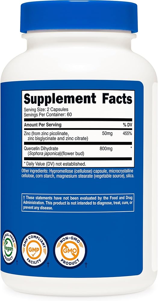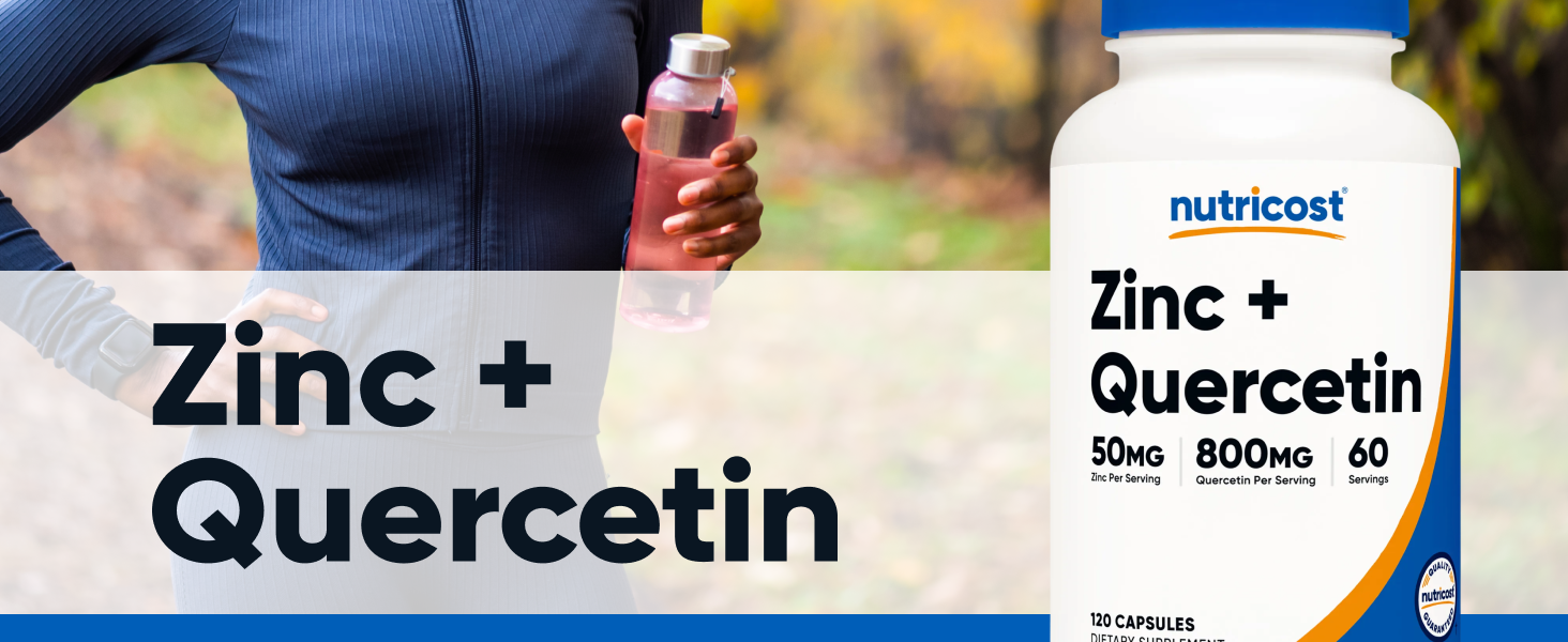 مكمل Nutricost الزنك + كيرسيتين (50 مجم زنك، 800 مجم كيرسيتين) 120 كبسولة - نباتية، خالية من الكائنات المعدلة وراثيًا، خالية من الغلوتين، 60 وجبة