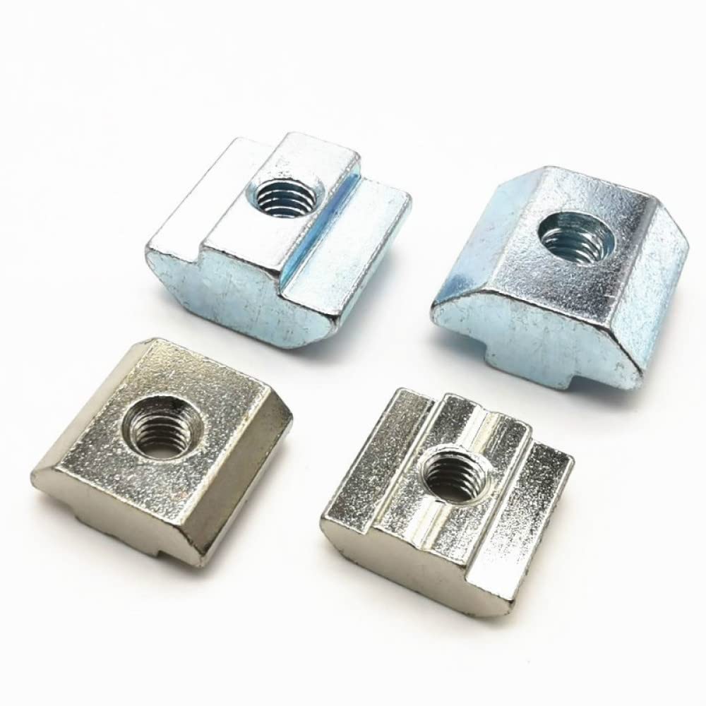 Bottom of T-Slot nut is staked to prevent the stud from protrusion. Material: The T nuts Made from carbon steel, Surface is Nickel-plated and good performance,these nuts have high hardness and a long service life. High strength and hardness. T-Slot nuts enable the user to add clamps to a fixture without tearing down existing clamps. Please pay attention to the required size when purchasing