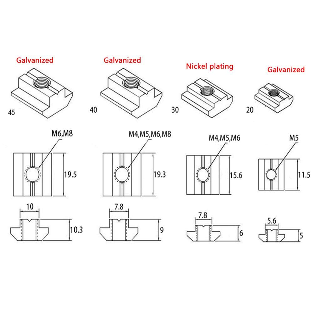 كتل الجوز المسار. صامولة انزلاقية على شكل حرف T، صامولة على شكل حرف T منزلق، صامولة على شكل حرف T منزلق 5/10 قطع M3 إلى M10 صواميل على شكل حرف T مربعة الشكل، صامولة مطرقة منزلقة لمثبت الألومنيوم 2020 3030 4040 4545 مطرقة