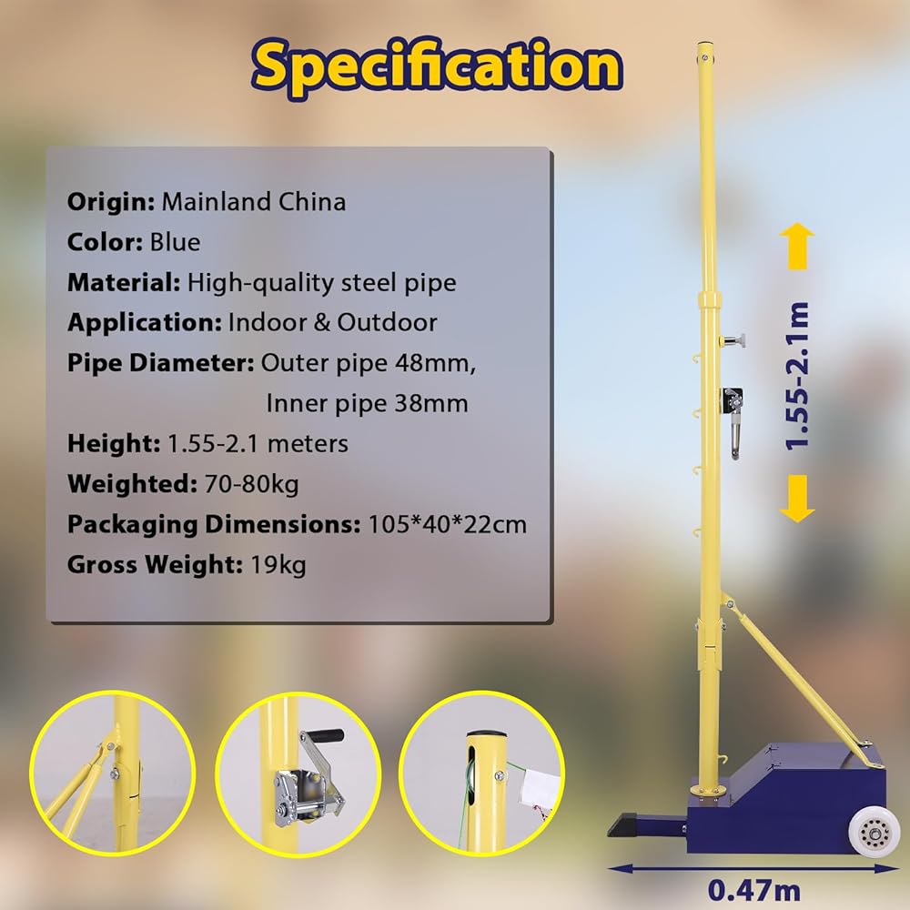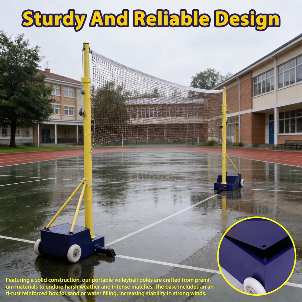Sturdy And Reliable Design: Featuring a solid construction, our portable volleyball poles are crafted from premium materials to endure harsh weather and intense matches. The base includes an anti-rust reinforced box for sand or water filling, increasing stability in strong winds.