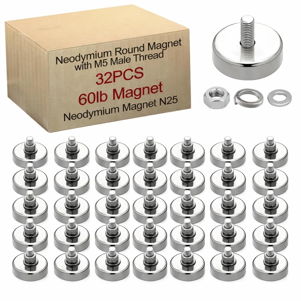 These neodymium magnets come with M6 external threaded studs that are screwed directly into or through the threaded holes of the fixture and secured with nuts to connect any hardware components, proper for cameras, videos, display panels, automation equipment, tools and machines.