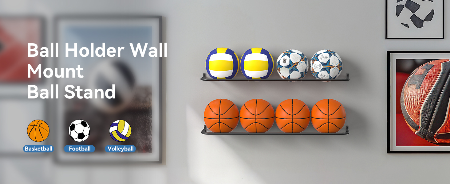 تصميم تخزين معياري: قم بزيادة المساحة الخاصة بك إلى أقصى حد من خلال منظم المعدات الرياضية المعياري المكون من قطعتين. على عكس الأنظمة الثابتة، يمكن تركيب هذه الوحدات المستقلة على أي ارتفاع أو فاصل زمني لتناسب احتياجاتك الخاصة. يعد هذا الإعداد المرن للتركيب على حامل الكرة مثاليًا لتصميم مساحة تخزين الكرات الخاصة بك لكرات السلة أو كرة القدم أو الكرات الطائرة.
