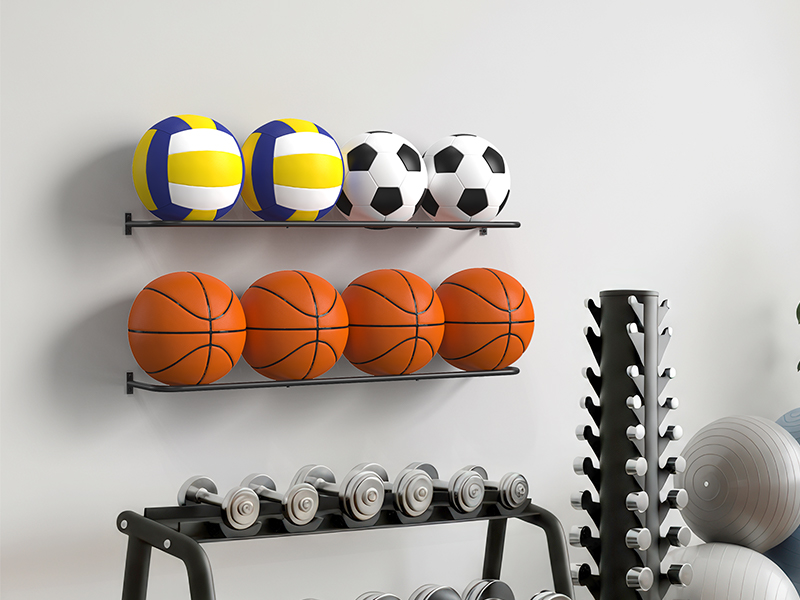 عرض المعدات الرياضية: يعمل هذا الرف الأنيق بمثابة شاشة عرض احترافية للمعدات الرياضية والمقتنيات. إنه بمثابة منطق تخزين كرات المرآب الداخلي المثالي لغرف النوم، مما يشجع المراهقين على الحفاظ على معداتهم مرتبة بعد التدريب. إن إنشاء مكان مخصص لكل كرة يبسط عملية التنظيف ويحافظ على المظهر الاحترافي