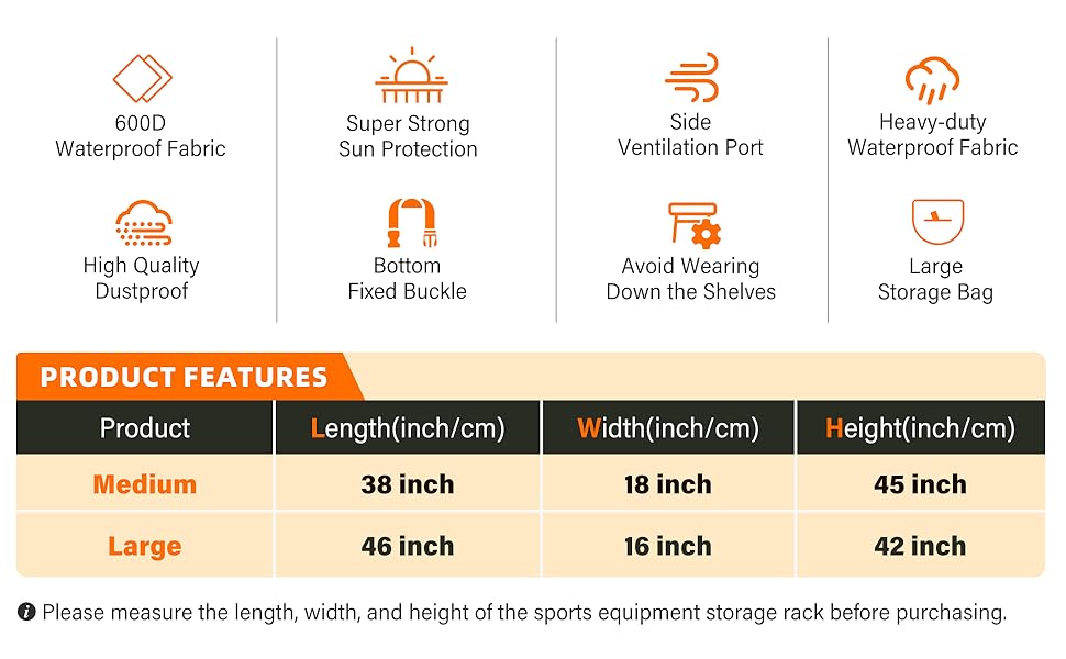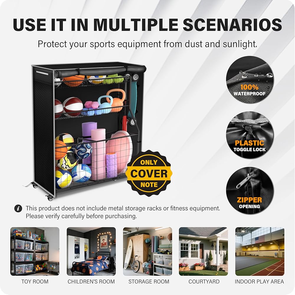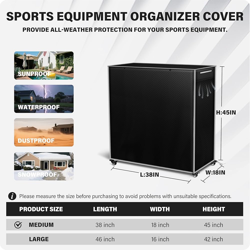 غطاء منظم للمعدات الرياضية للجراج، حماية من جميع الأحوال الجوية لتخزين المرآب والمعدات الرياضية - 91.44 سم طولًا × 45.72 سم عرضًا × 114.36 سم ارتفاعًا (الغطاء فقط)