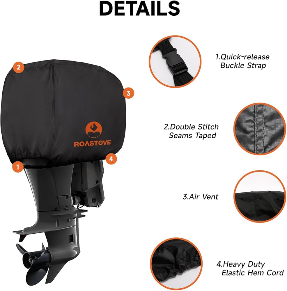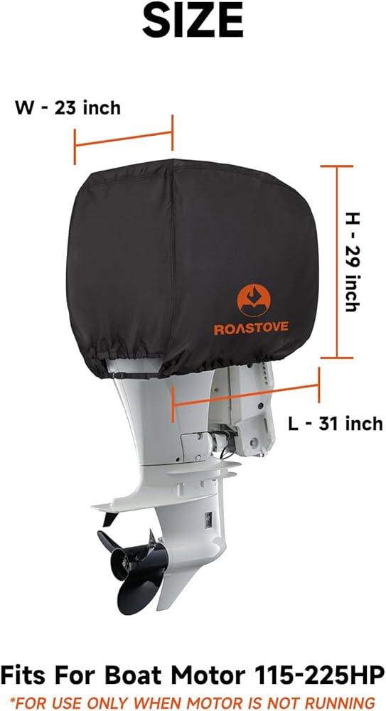 Roastove Outboard Motor Cover,420D Heavy Duty Boat Engine Covers ,Size: 31"L x 23"W x 29"H,Fit for Motor 115-225 HP, Black
