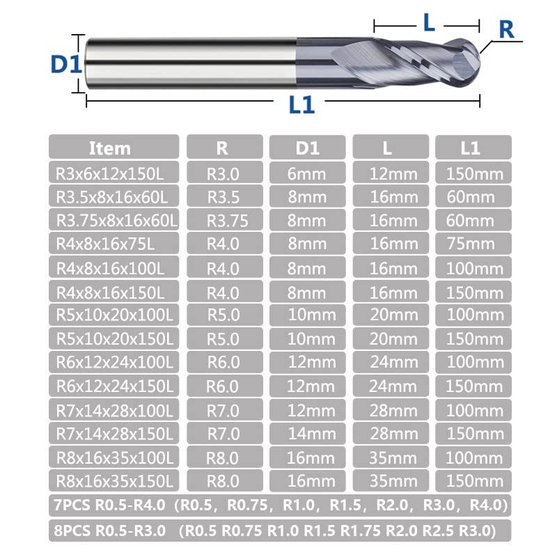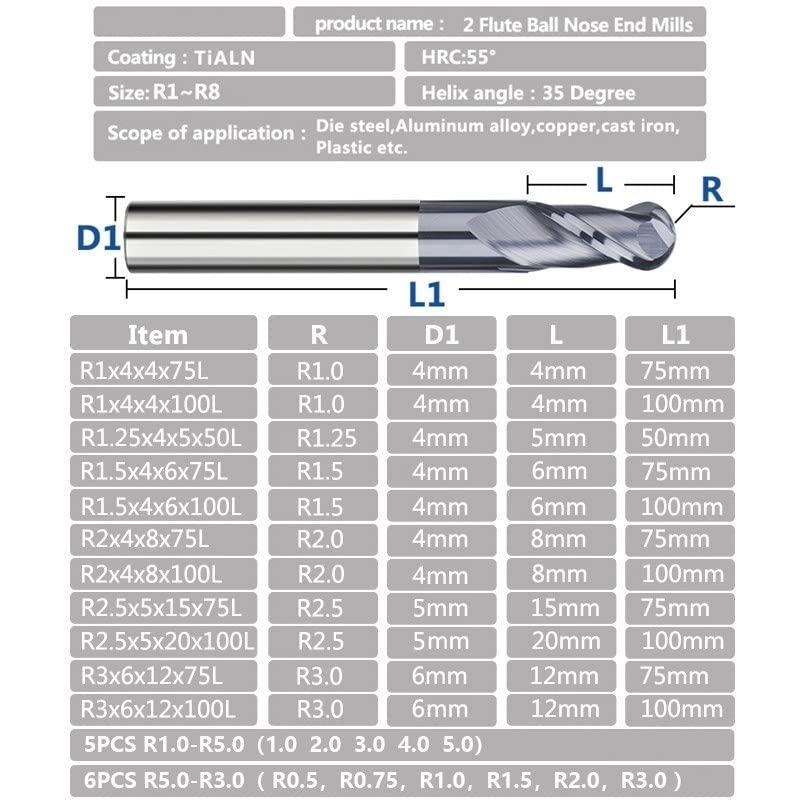 1 قطعة اثنين من المزامير الصلبة كربيد الكرة الأنف نهاية المطاحن CNC بت R0.5-R6.0 كربيد قاطعة المطحنة ماكينة بتحكم رقمي بالكمبيوتر راوتر بت أدوات الطحن