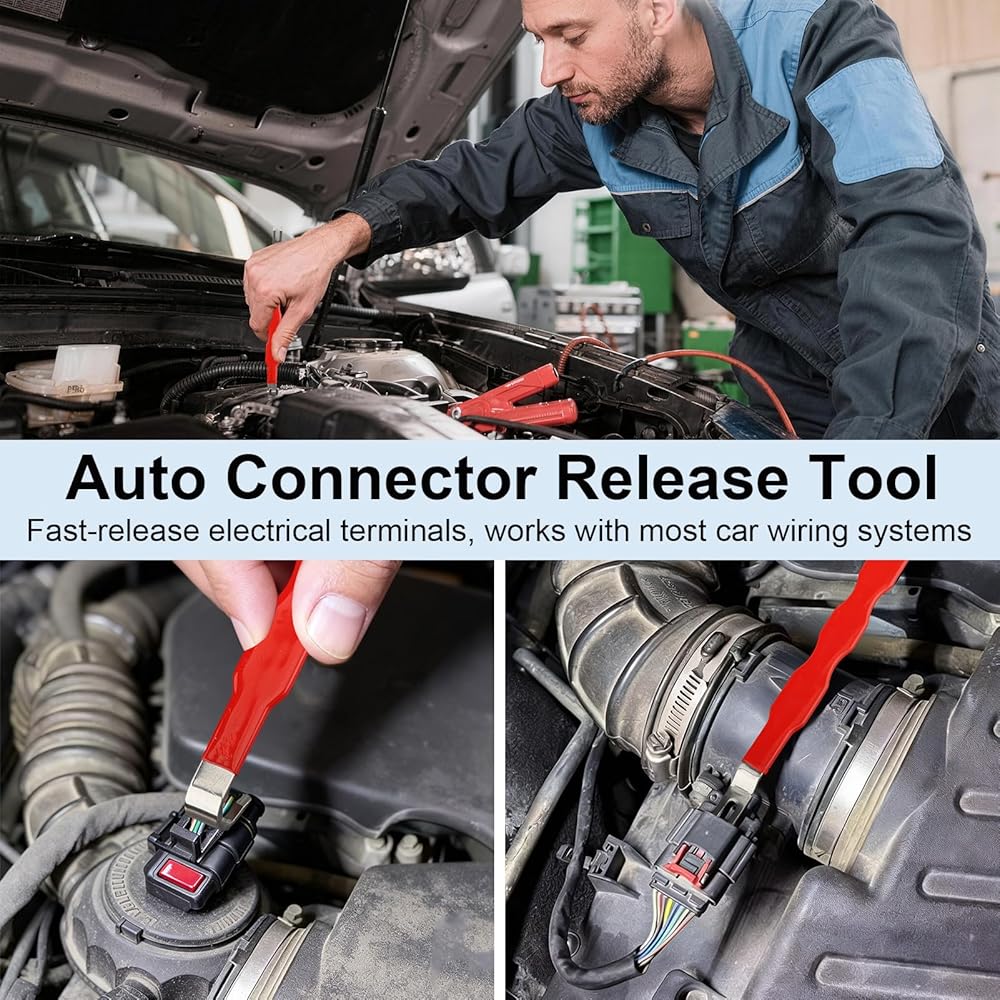 Simplify your automotive electrical repairs with the 2 Pcs Automotive Electrical Terminal Connector Removal Tool Set, a must-have for every car owner and professional mechanic. Designed with a precision dual-head structure, this tool allows easy operation from multiple angles—even in tight, hard-to-reach spaces—effortlessly separating electrical connectors without damaging wires or terminals, avoiding costly replacements.